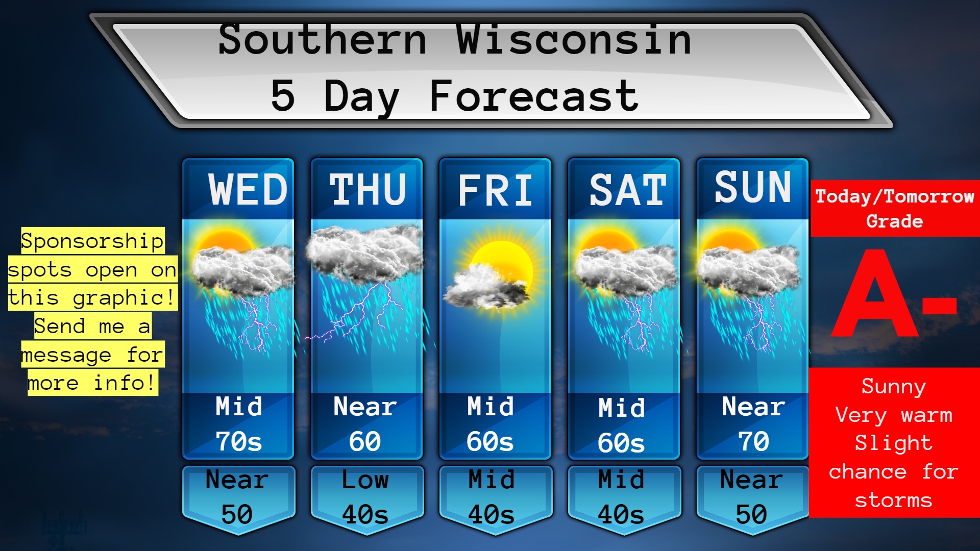 This Wednesday forecast is sponsored by Createscape Landscaping Service, Inc. out of Mukwonago, WI. 262-662-0201, createscapeoffice@wi.rr.com , andwww.createscapelandscaping.com