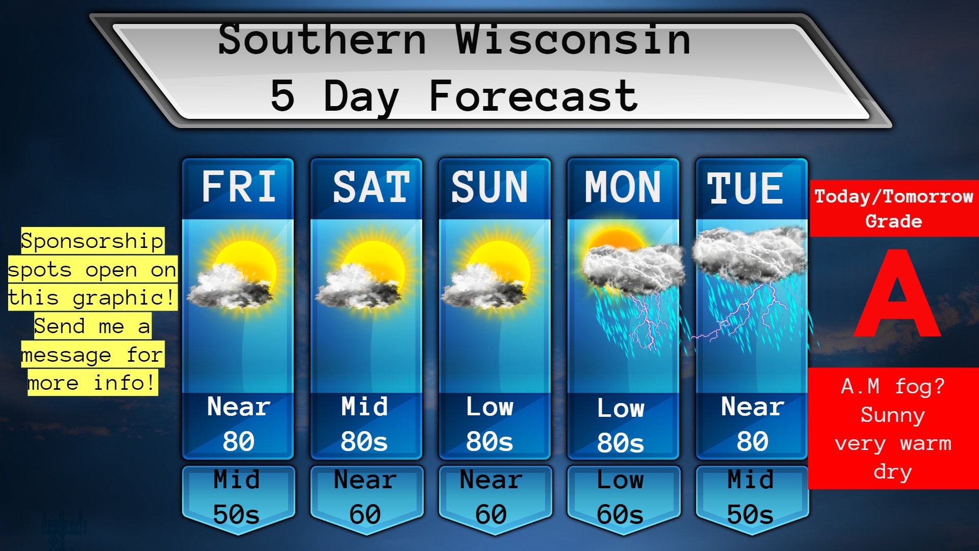 This Thursday forecast is brought to you by DJM Rock Walls and Bobcat Services in Belleville, WI. 608-370-4510. www.djmrockwalls.com. djmrockwalls@outlook.com