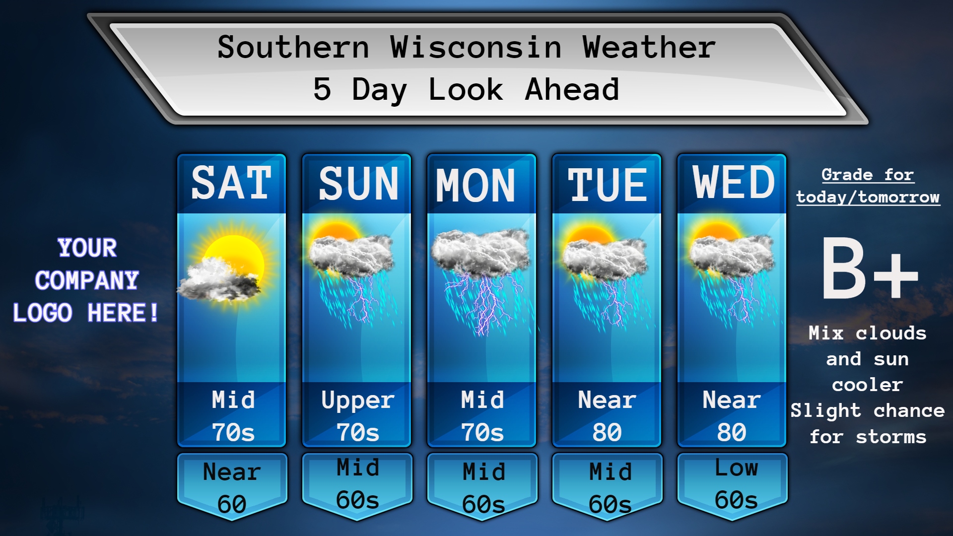 Good morning Wisconsinites! Happy Saturday! Today is going to be the day to get that yard mowed and weeds pulled! We will likely see a mix of clouds and sunshine throughout the day with only a slight chance of a storm that MAY pop up. Highs today will be in the upper 70s. A couple clouds tonight with light winds and temps near 60. Perfect night for a bonfire, but don’t forget to lather up in spray LOL.