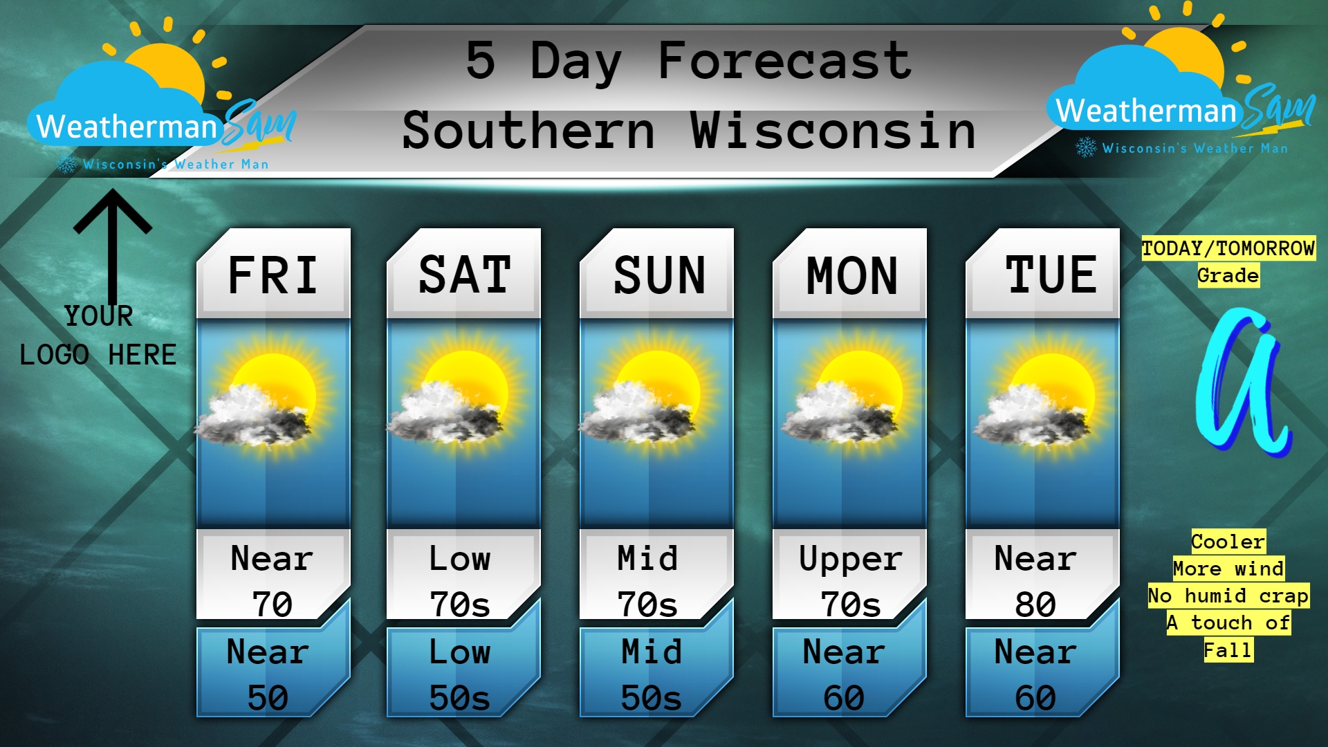 This Friday forecast is sponsored by Brinkmann Fiberglass Pools out of Oconomowoc, WI. 262-567-6823. www.brinkmannfiberglasspools.com. Robb@brinkmannfiberglasspools.com . 2215 N. Dousman Road #2 in Oconomowoc.