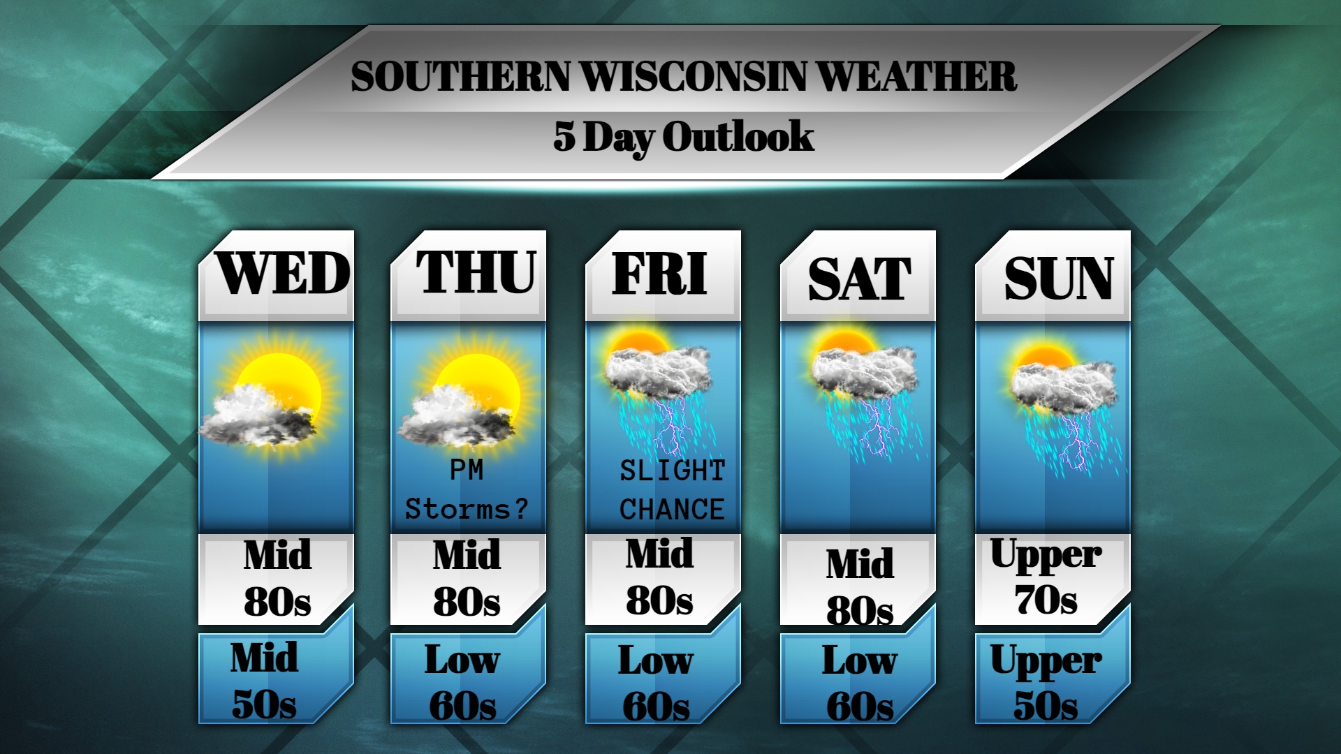 Good evening Southern Wisconsin! Welcome to your Tuesday night folks! We have a cool night on tap and especially with today being in the mid to upper 80s. We should be clear tonight with temps in the low 50s. Light to calm winds.