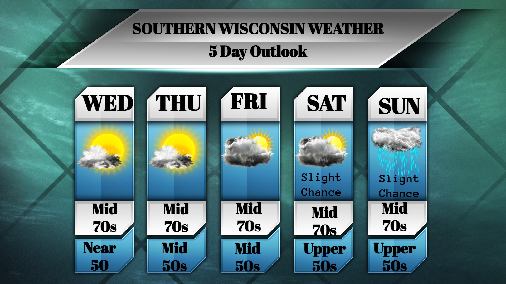 Good morning Wisconsinites! Happy hump day! Today is going to be sunny with temps in the mid 70s. Light winds. Clear tonight with temps in the low 50s and a calm wind.