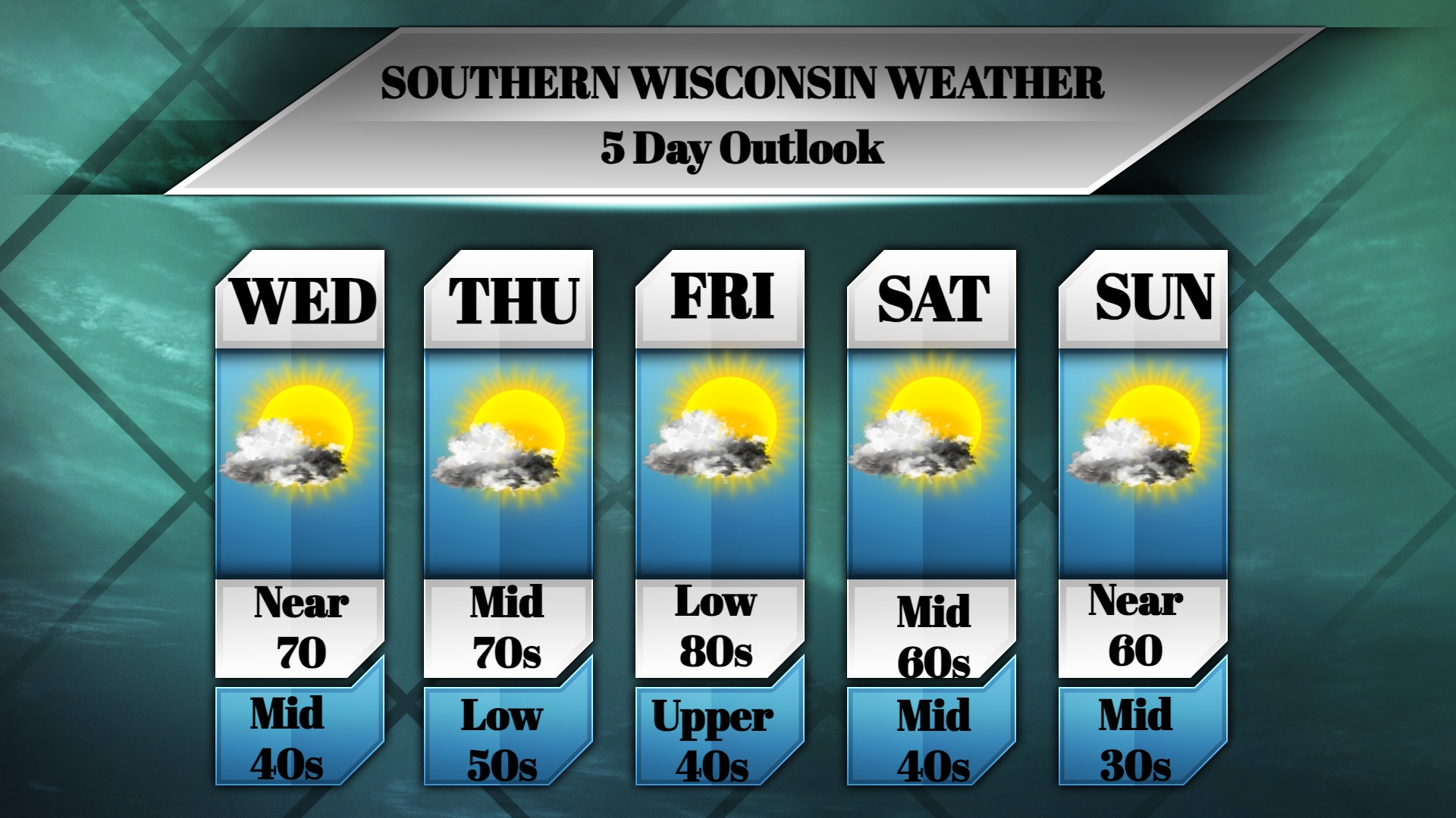 Good morning Wisconsinites! Happy hump day! Lots of sunshine today with temps near 70 degrees. Light winds. Clear tonight with temps in the low 40s. Light winds.