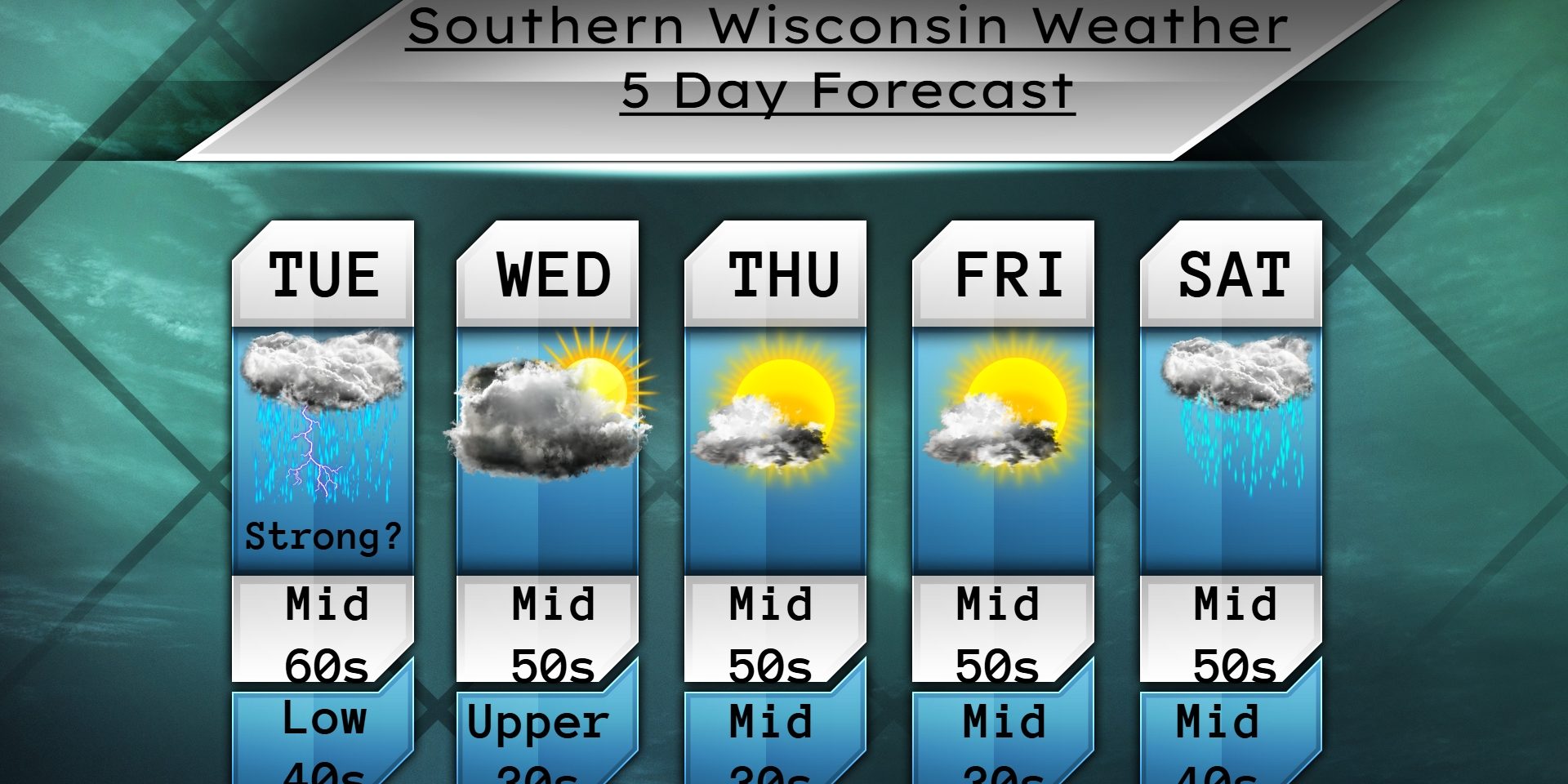 Good morning Southern Wisconsin! Happy Tuesday! We can expect some on and off showers and storms today. They will be isolated to scattered, so some areas may see more rain than others. There’s still a chance that some of these storms could go severe with a high wind threat and a small tornado threat. If you have outdoor plans, please keep an eye to the sky. Highs today will be in the mid 60s. South winds 16-21mph with gusts to 30-35mph. Some patchy morning fog is possible too. Shower chances will end tonight as lows drop to the low 40s. SW to west winds 11-16mph with gusts to 25-30mph.