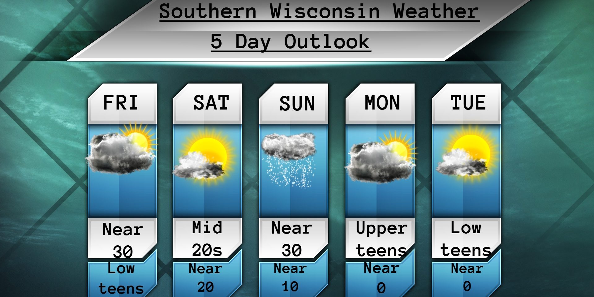 Light snow is likely on Sunday with temps near or just above 30 degrees. So this won’t be a real cold snow as we will be close to the low pressure. I think the main area of accumulation snow will be up in Central WI and only an inch or two around here. These clippers can jump all over the place even right before it snows. Any jogs south would increase our snow totals. Any jogs north would mean nothing or maybe some mix precip. Either way this isn’t going to be a big weather maker, but could cause some travel issues during the day on Sunday into Sunday night. South winds 4-9mph. Cloudy Sunday night with temps near 10 degrees. So any snow that does fall you will want to shovel it quickly. West winds 4-9mph.