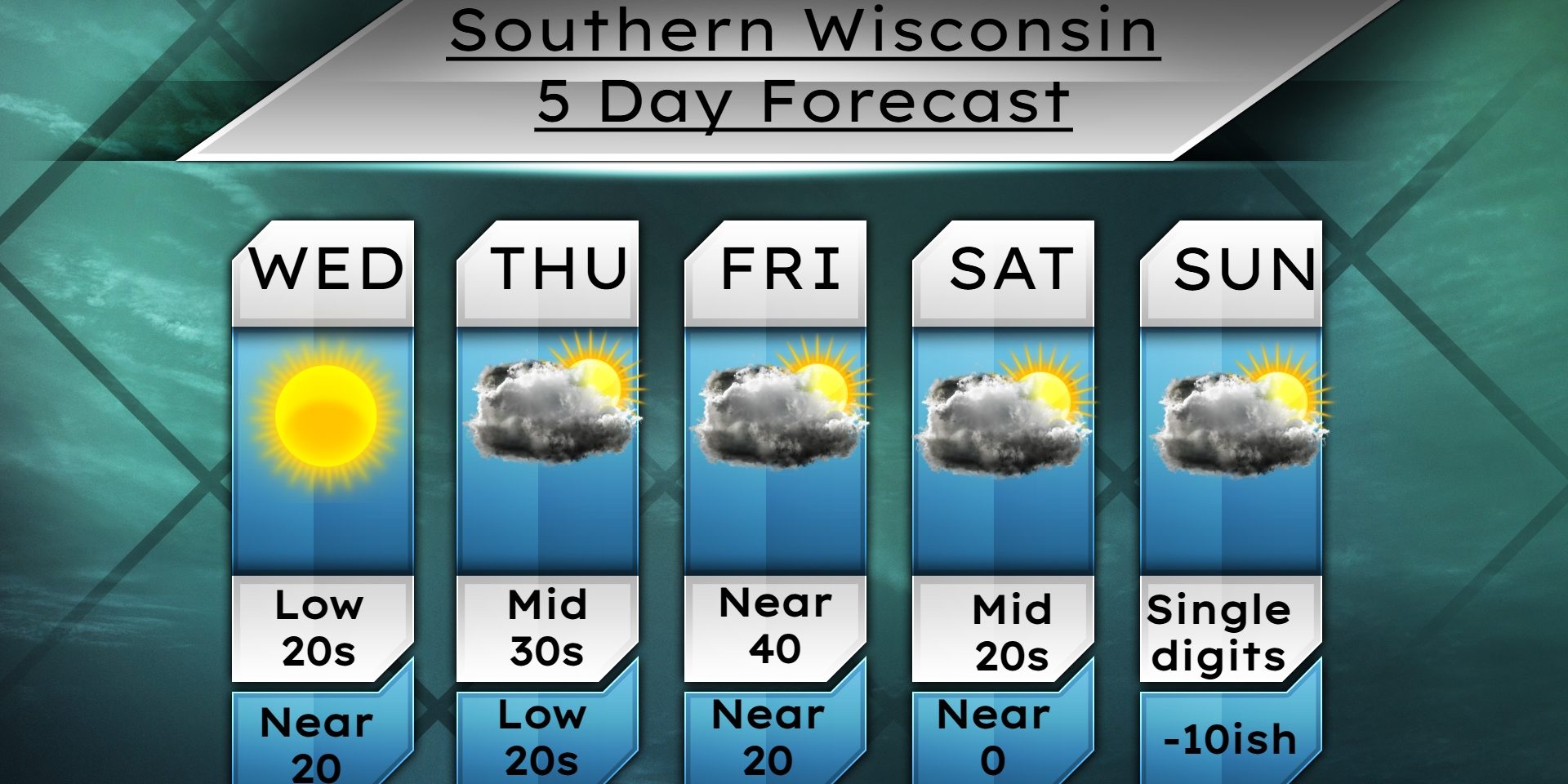 Good evening Southern Wisconsin! Tonight is going to be another cold one before we start to warm up. Temps tonight under clear skies will drop to near 0 degrees. Winds will become light.