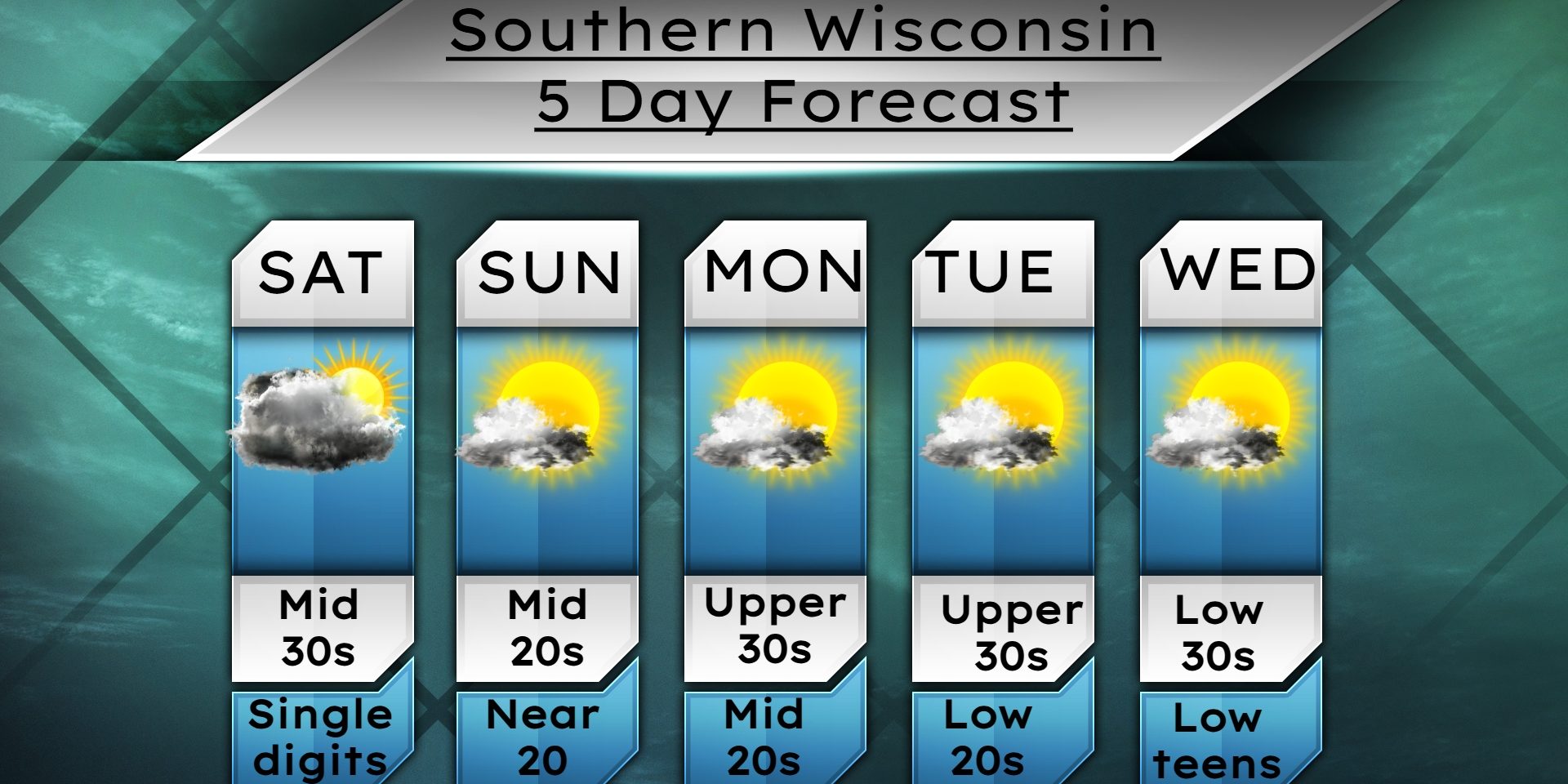Sunday is looking sunny and cooler, but more seasonal with temps in the mid 20s. SW winds 8-13mph. Clear and not as cold Sunday night with temps near 20 degrees. West winds 11-16mph with gusts to 20-25mph.
