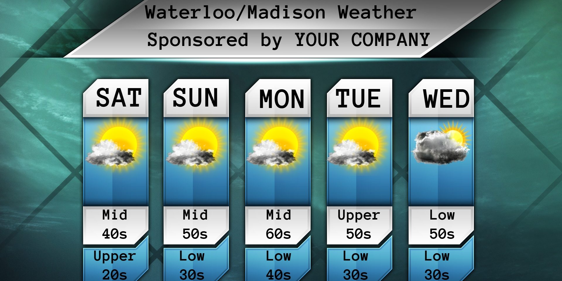 Sunny, windy, and a bit warmer for your Saturday. Temps will be in the mid to upper 40s and west winds 16-21mph with gusts to 25-30mph. Clear at night with temps in the mid 20s and west winds 4-9mph.