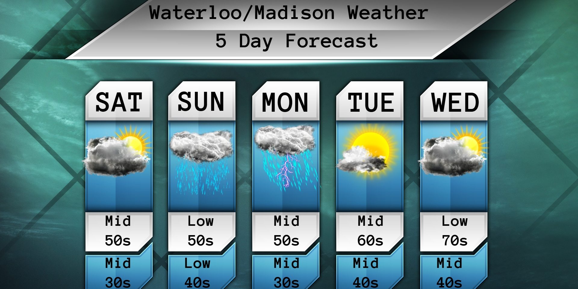 Maybe some sunshine early Sunday, but then clouds will roll in pretty quickly and we could see some showers Sunday afternoon. Highs will be in the low 50s. East winds 8-13mph. Showers with possible thunder at night and temps in the low 40s. East winds 11-16mph. Half inch or more of rain is possible on Sunday and Sunday night.