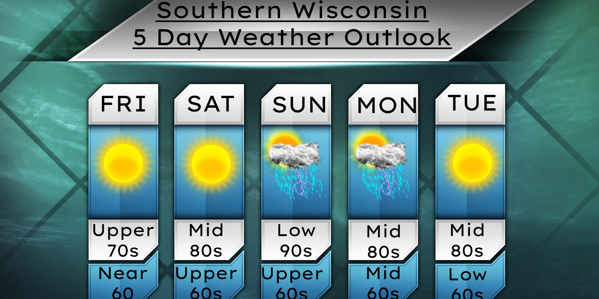 Good evening Southern Wisconsin! Showers and storms are still looking likely for most of the area. These will come within a line that will be associated with a cold front. The cold front will bring cooler weather for ONE day LOL. Welcome to Summer I guess. Temps tonight will drop to near 70 degrees. SE to SW winds 4-9mph. Rainfall up to a half inch is possible in some locations.