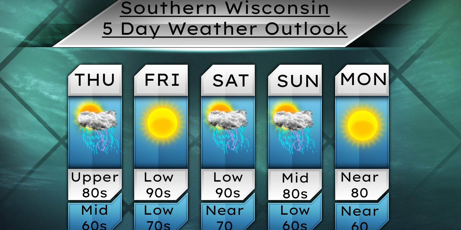 Saturday is going to be another scorcher with temps in the low 90s. SW winds 11-16mph with gusts to 20-25mph. Slight chance for storms in the afternoon and a bit of a better chance comes in at night with temps near 70. SW winds 11-16mph.