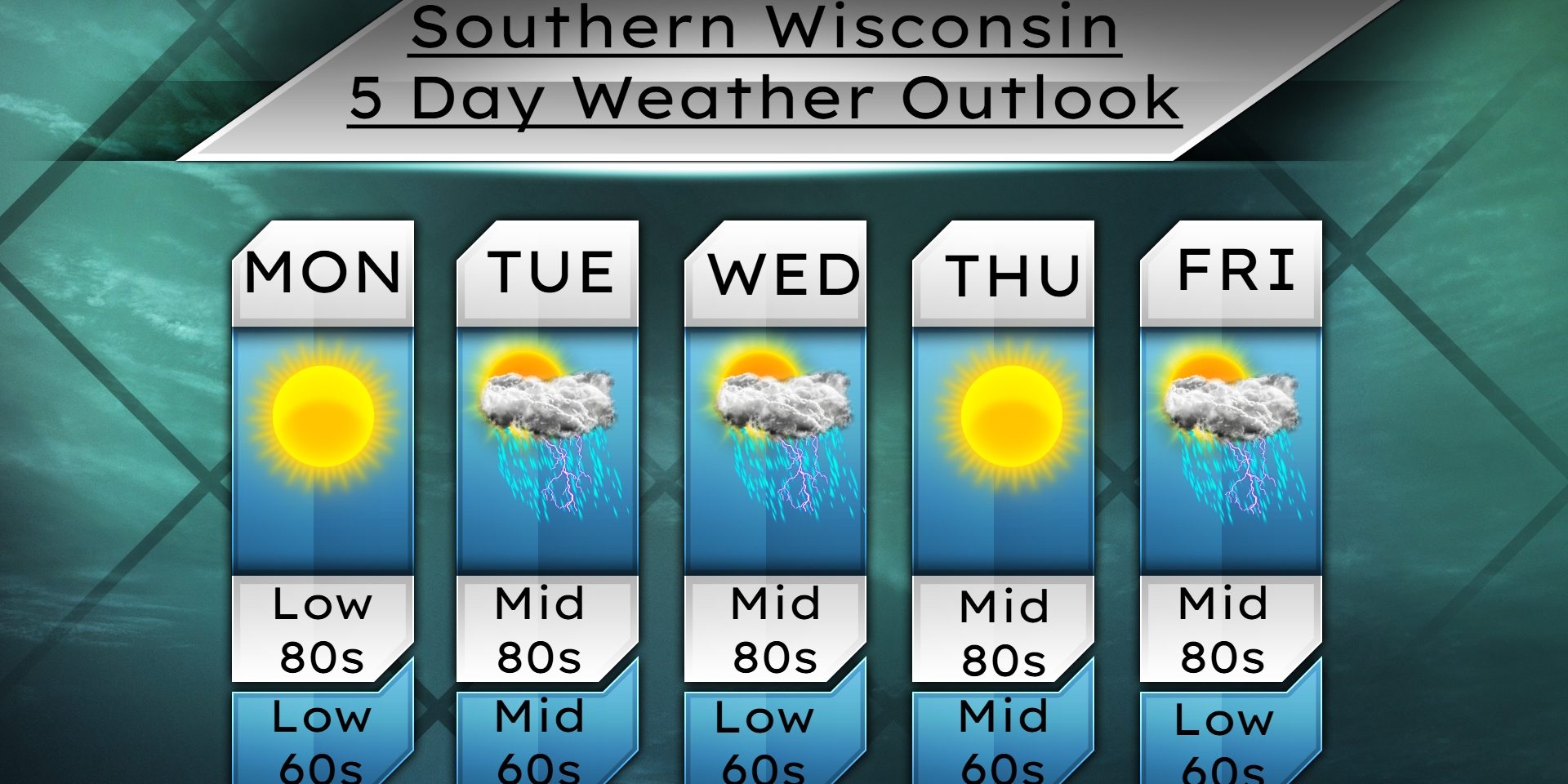 Chances for storms returns on Friday into Friday night. Highs in the mid 80s and lows in the mid 60s.
