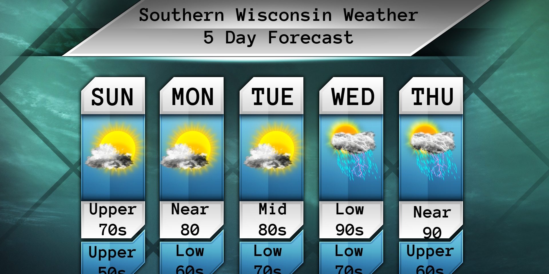 Good evening Wisconsin! Happy Saturday night! We made it through a quick one day hot stretch. Sunday and Monday look to be decent, but then HOT after that. More on that in a bit. Tonight we will be cloudy with temps in the low to mid 60s. Light and variable winds.