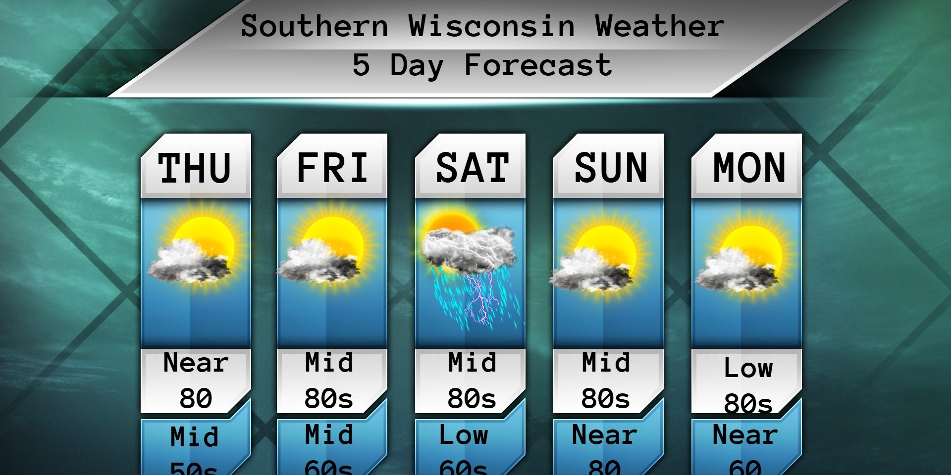 The weekend is still looking hot with temps in the mid 80s for both days. Just a slight chance for a storm on Saturday.