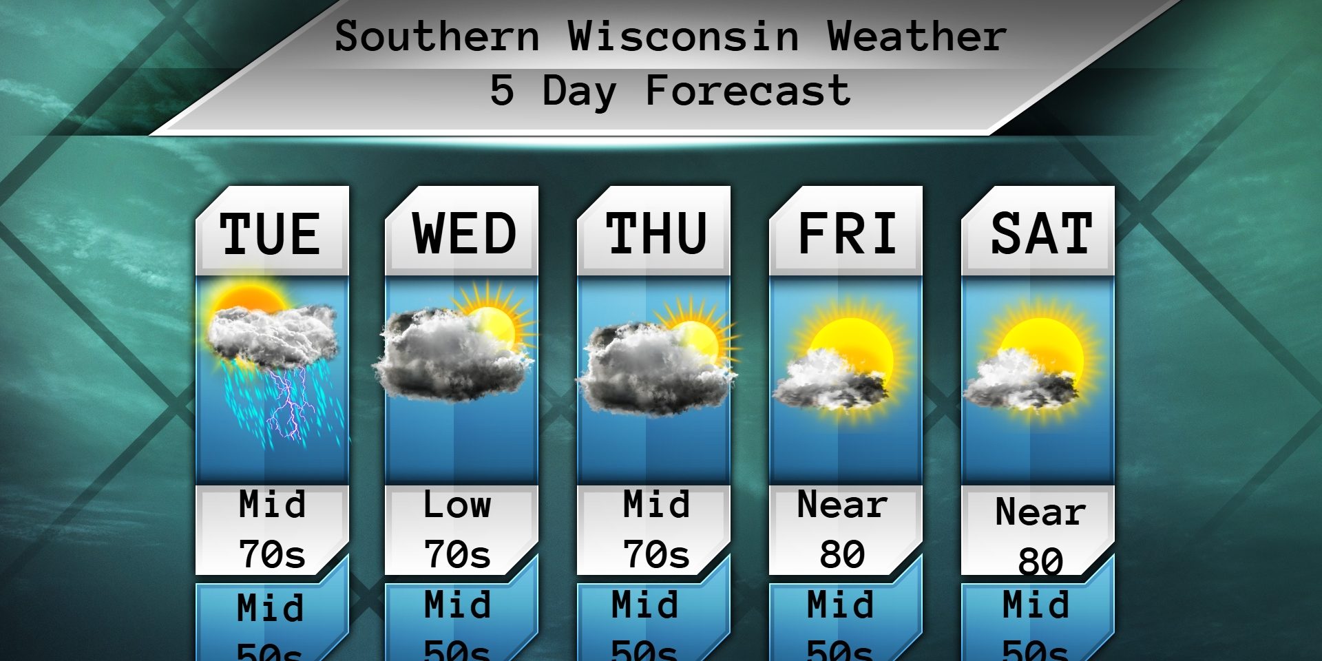 Good evening Southern Wisconsinites! We made it through another Monday folks! I can already smell the weekend! LOL. Showers and storms are happening now west of Madison. More showers and storms are possible east of Madison this evening and into the overnight hours. Lows in the low 60s and calm winds. Heavy rainfall is possible. Some gusty winds and small hail is also possible.