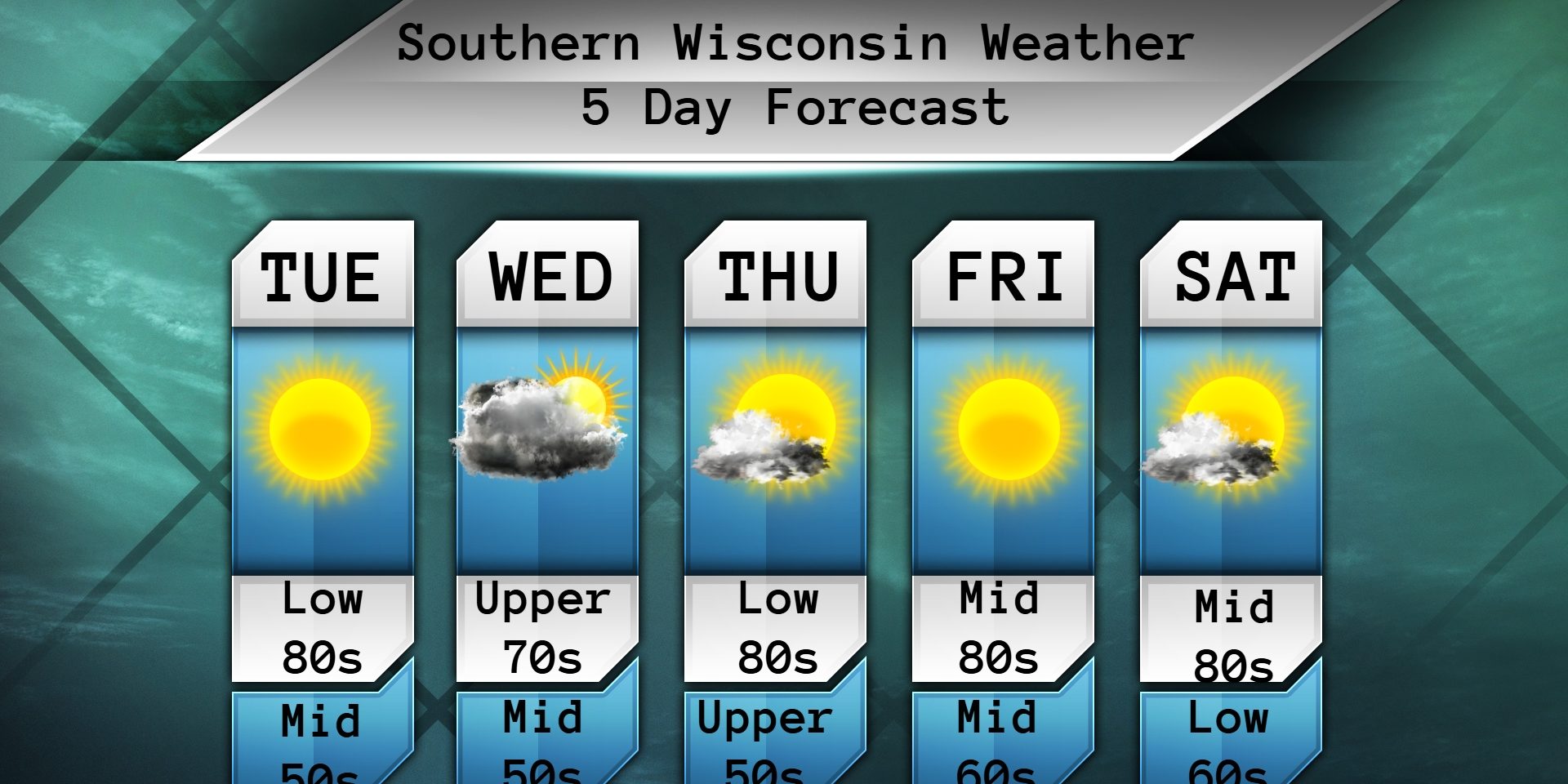 Good morning Southern Wisconsin! There is some patchy fog out there this morning. We will see sunshine and temps around the low 80s today with light winds. A couple to a few clouds tonight with temps in the mid 50s and light winds.