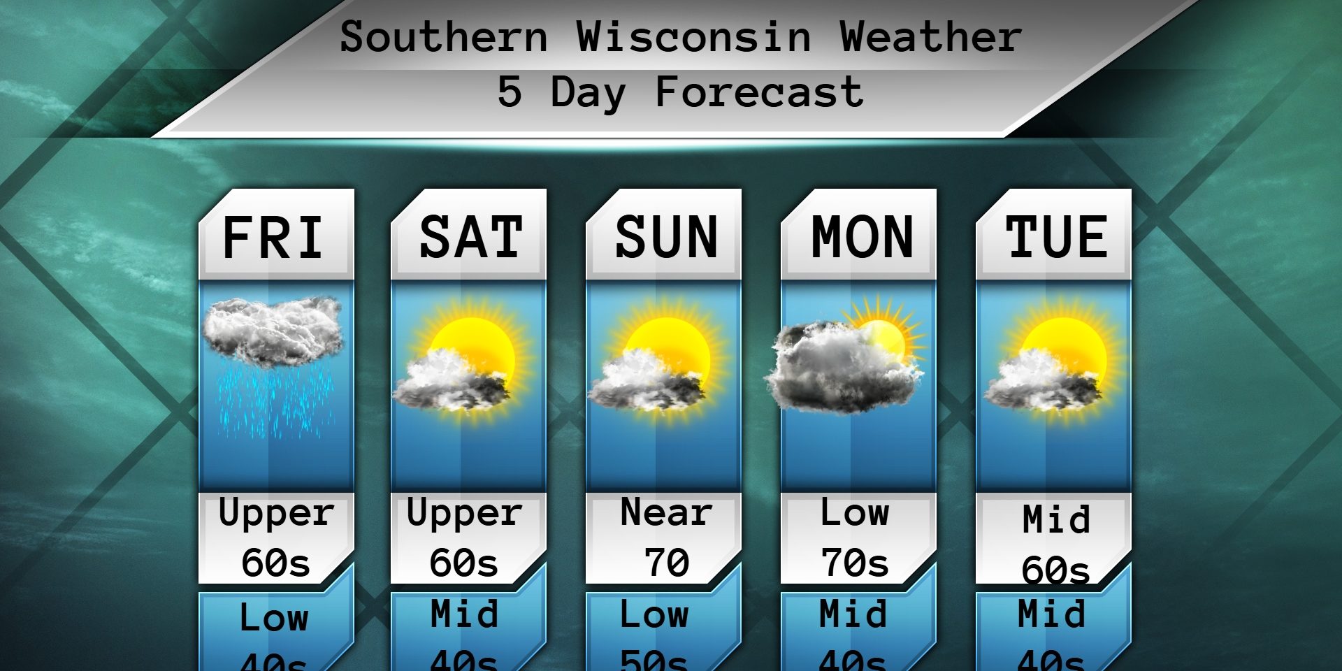 Sunny and awesome on Saturday with temps in the mid to upper 60s. Light winds. Clear at night and temps around the mid 40s. Calm winds. Perfect night for a bonfire! Hopefully the Brewers aren’t playing!