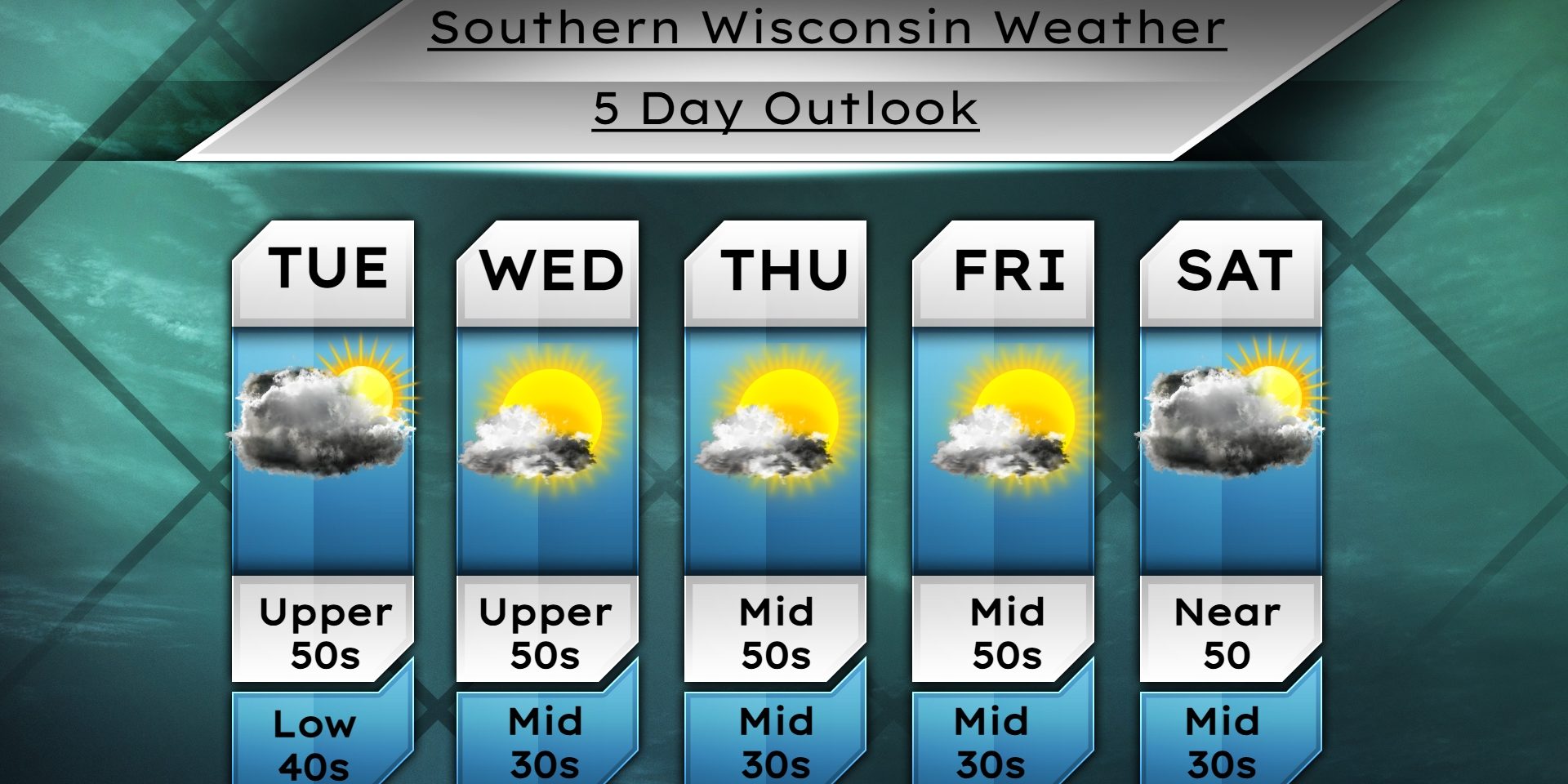 Good evening Southern Wisconsinites! The rain chances are gone for the week. They were less than 50% of happening anyway. A couple clouds tonight with temps near 40 degrees. East winds 4-9mph.
