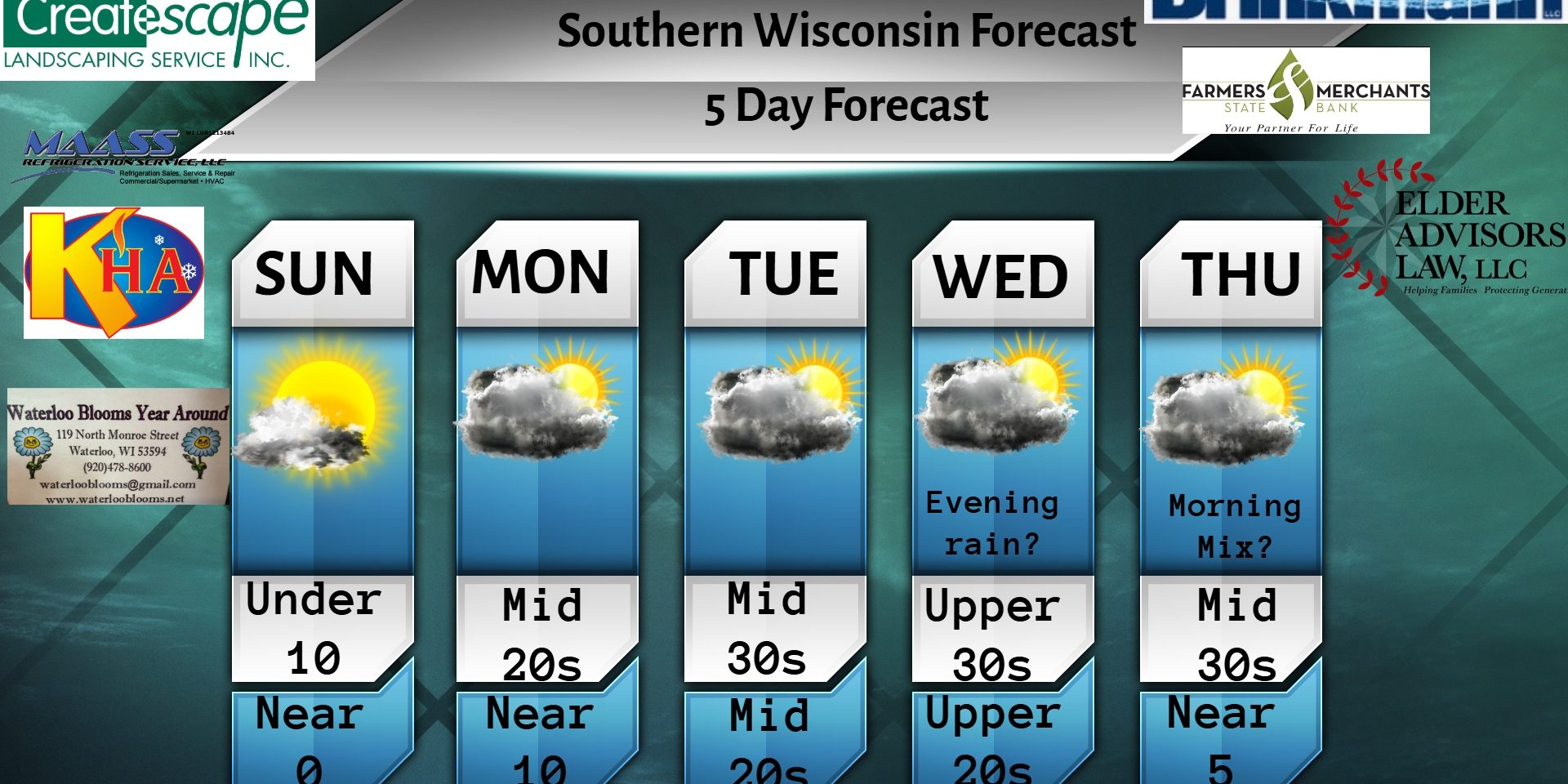 This Saturday evening forecast is sponsored by Farmers & Merchants State Bank! Waterloo is 920-478-2181. Marshall is 608-655-3451. Lake Mills is 920-630-5550. Contact them at https://www.fandmstbk.com/contact-us