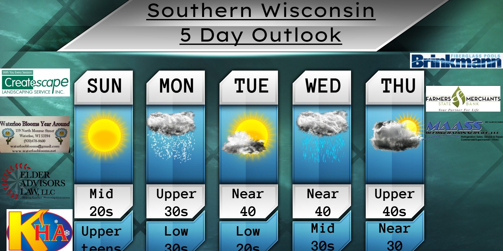 This Sunday Morning Forecast is sponsored by Maass Refrigeration. 920-206-9099. info@maassrefrigeration.com. www.maassrefrigeration.com