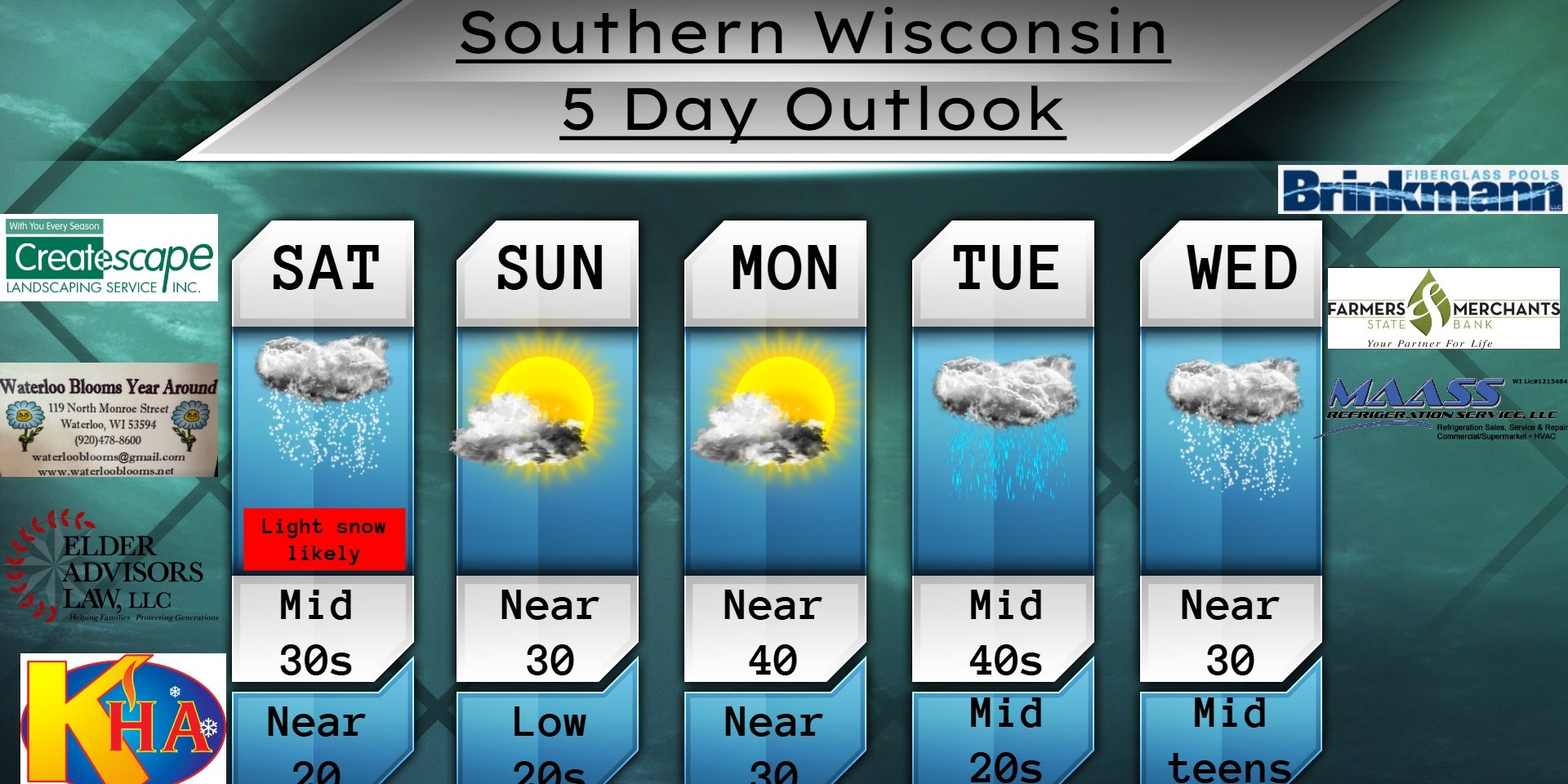 This Saturday morning forecast is sponsored by Farmers & Merchants State Bank! Waterloo is 920-478-2181. Marshall is 608-655-3451. Lake Mills is 920-630-5550. Contact them at https://www.fandmstbk.com/contact-us