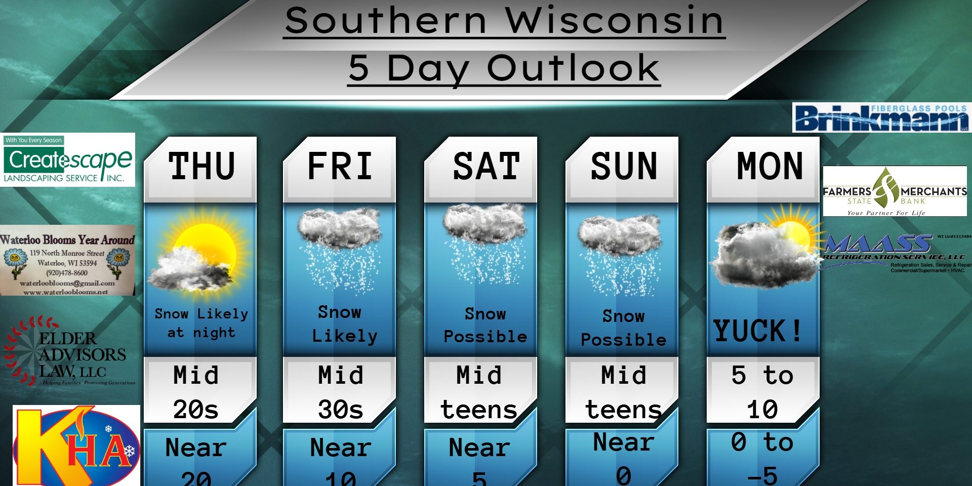 This Wednesday evening forecast is sponsored by Createscape Landscaping Service, Inc. out of Mukwonago, WI. 262-662-0201, createscapeoffice@wi.rr.com , and www.createscapelandscaping.com