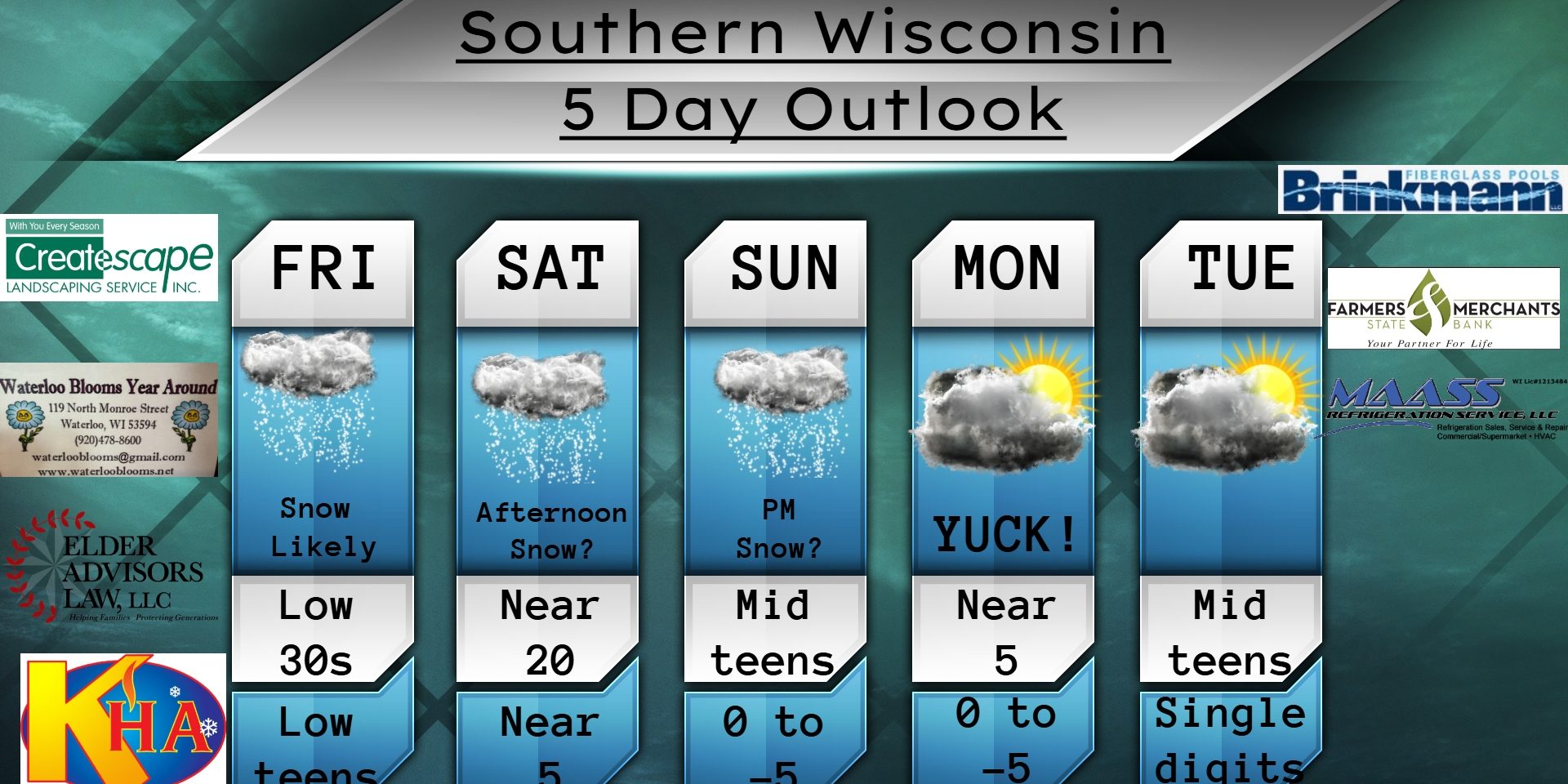 This Thursday evening forecast is brought to you by Klecker’s Heating. 920-261-9218. info@kleckersheating.com www.kleckersheating.com