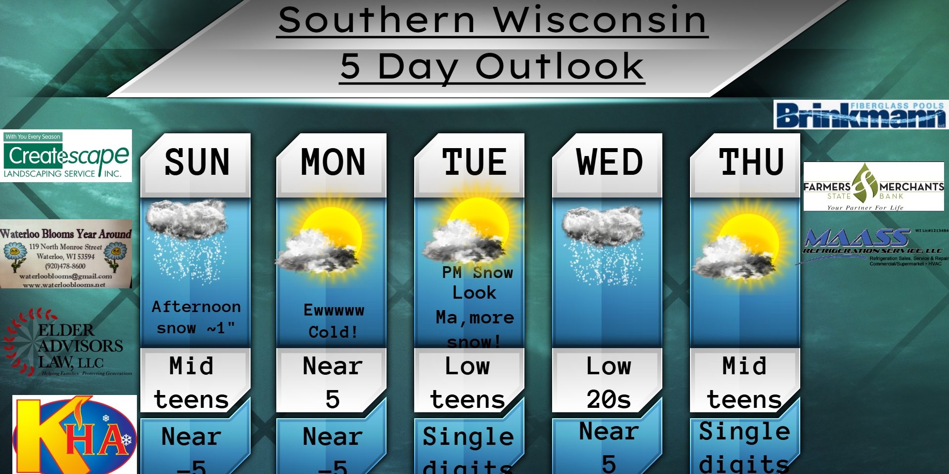 This Sunday Morning Forecast is sponsored by Maass Refrigeration. 920-206-9099. info@maassrefrigeration.com. www.maassrefrigeration.com