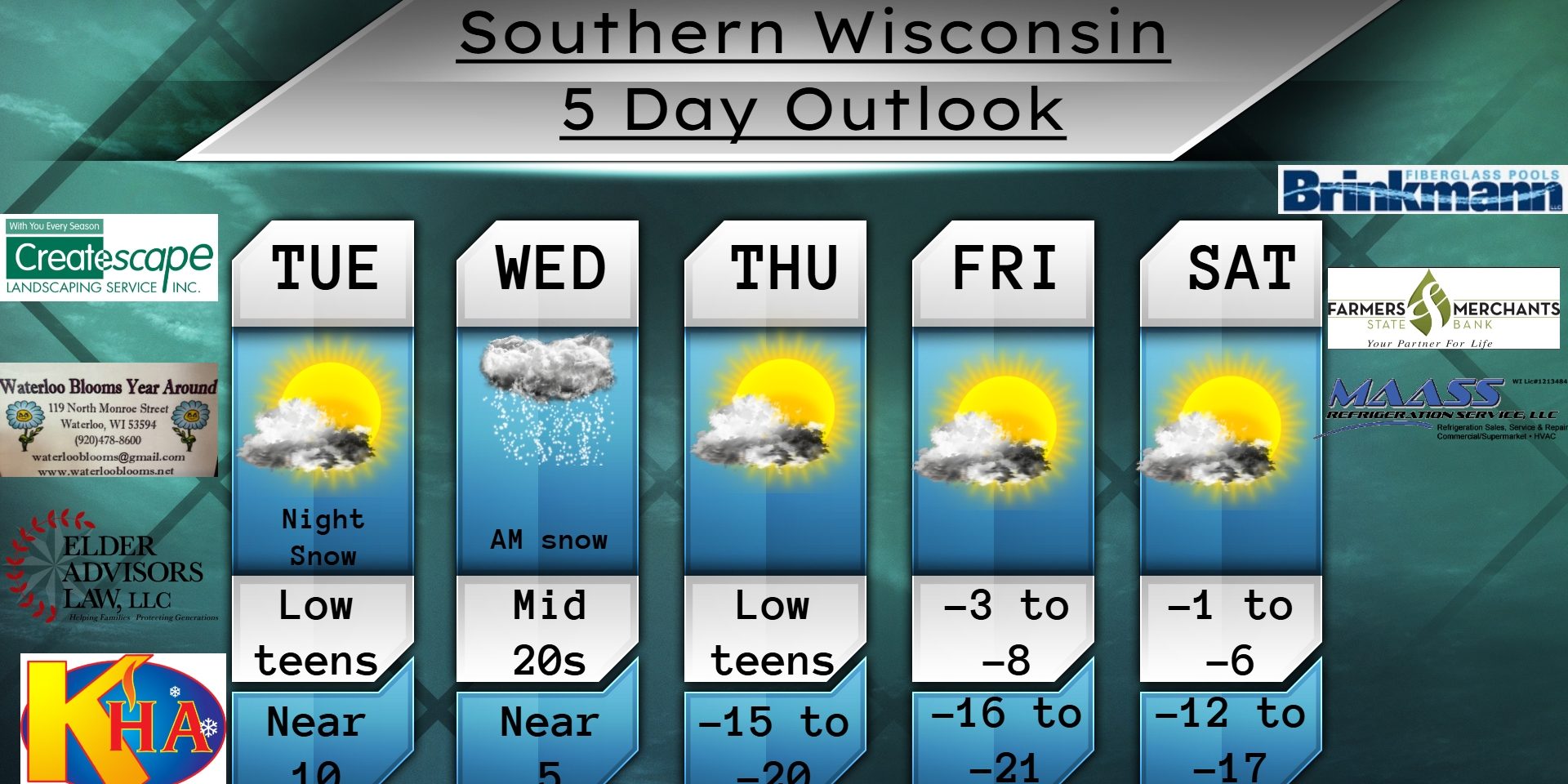 This Tuesday morning forecast is brought to you by Waterloo Blooms out of Waterloo, WI. WaterlooBlooms@gmail.com and 920-478-8600