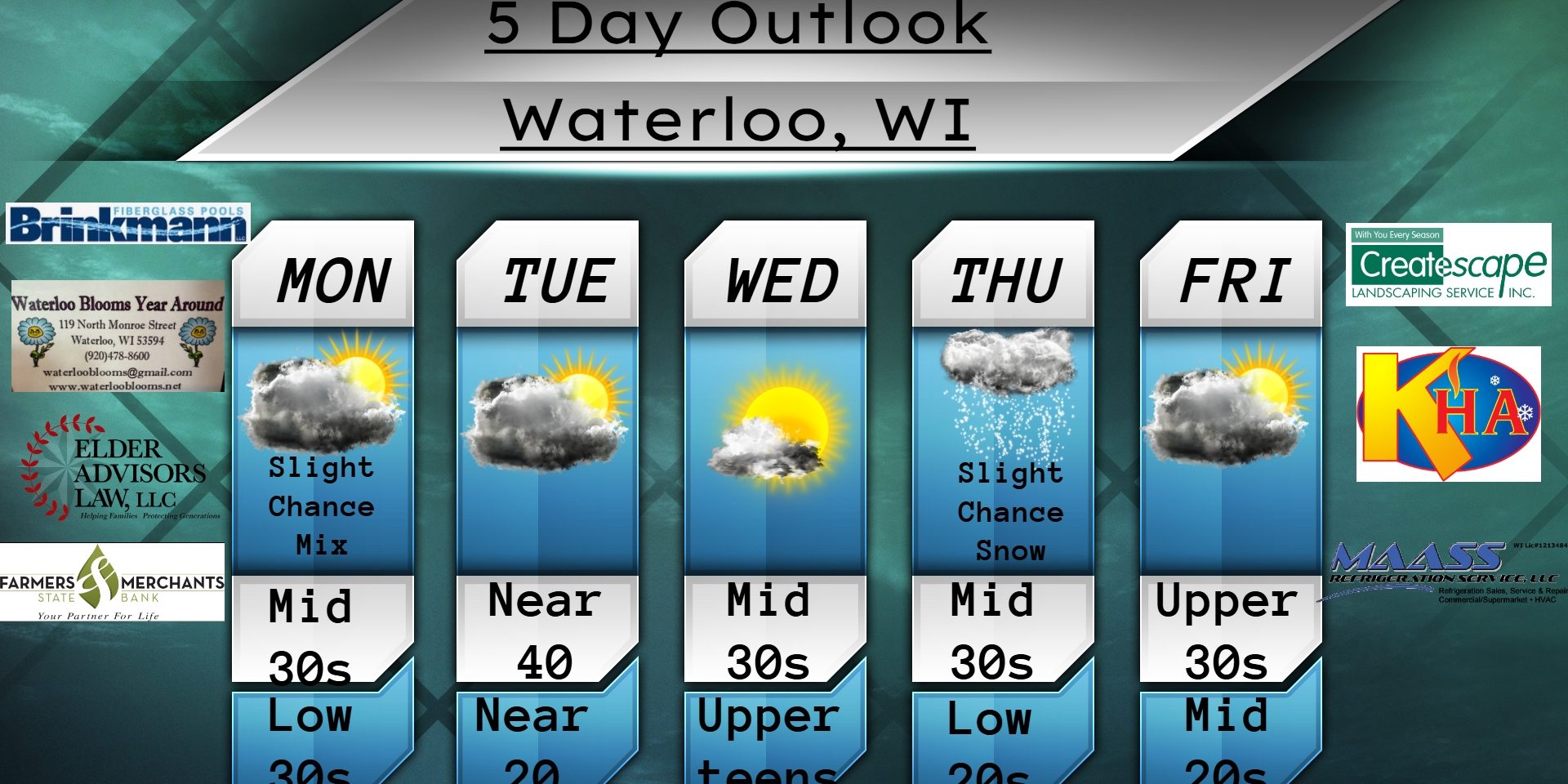 This weekly Forecast is sponsored by Maass Refrigeration. 920-206-9099. info@maassrefrigeration.com. www.maassrefrigeration.com