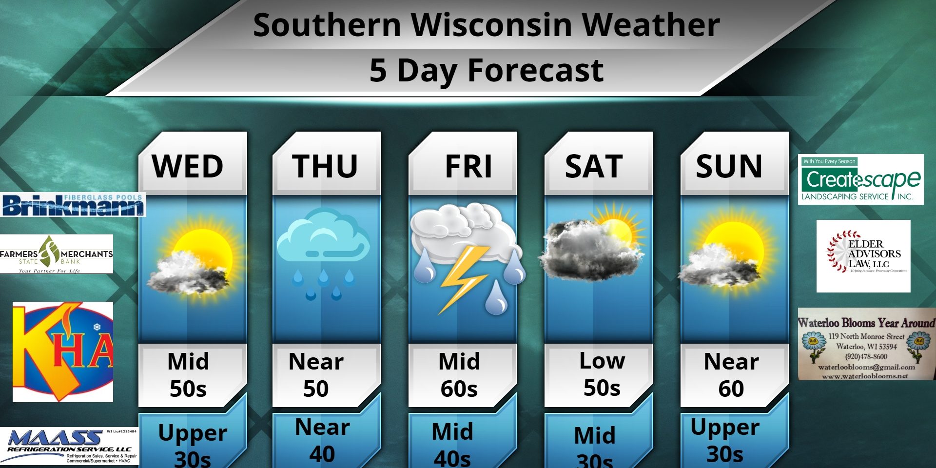 This Wednesday morning forecast is sponsored by Createscape Landscaping Service, Inc. out of Mukwonago, WI. 262-662-0201, createscapeoffice@wi.rr.com , and www.createscapelandscaping.com
