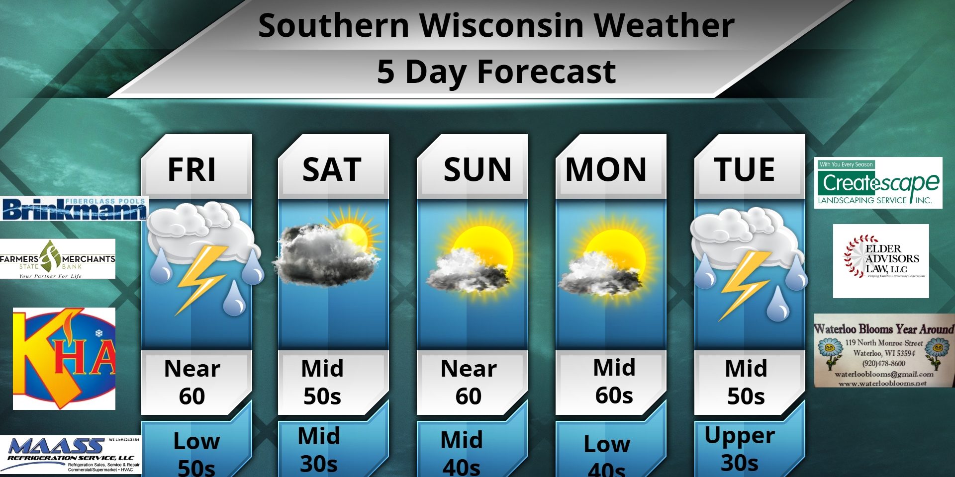 This Friday morning forecast is sponsored by Brinkmann Fiberglass Pools out of Oconomowoc, WI. 262-567-6823. www.brinkmannfiberglasspools.com. Robb@brinkmannfiberglasspools.com . 2215 N. Dousman Road #2 in Oconomowoc.