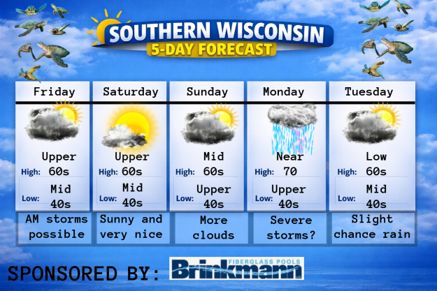 This Friday evening forecast is sponsored by Brinkmann Fiberglass Pools out of Oconomowoc, WI. 262-567-6823. www.brinkmannfiberglasspools.com. Robb@brinkmannfiberglasspools.com . 2215 N. Dousman Road #2 in Oconomowoc. My online merchandise store is now open for shopping! We have pick up spots for Lake Mills and Watertown and you can also get your orders shipped! All orders over…