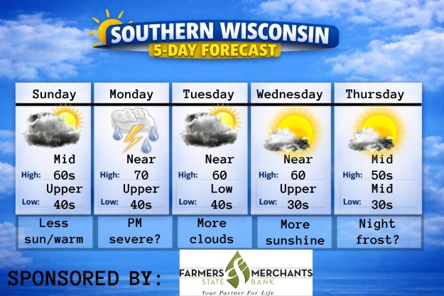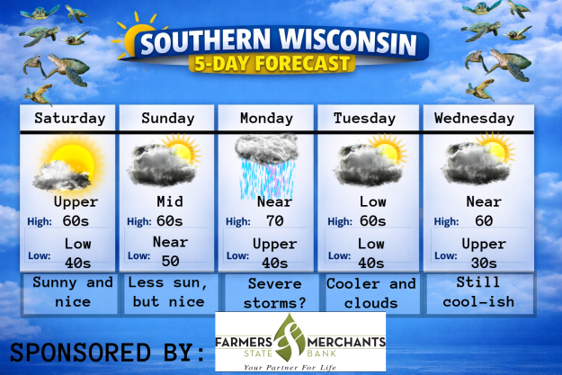 This Saturday evening forecast is sponsored by Farmers & Merchants State Bank! Waterloo is 920-478-2181. Marshall is 608-655-3451. Lake Mills is 920-630-5550. Contact them at https://www.fandmstbk.com/contact-us Please support my passion of weather here THE FORECAST CURRENT CONDITIONS IN WATERLOO, WI: TIME: 800PM TEMP: 58 degrees DEWPOINT: 38 degrees WINDS: East 4-9mph CURRENT CONDITIONS: Fair TONIGHT:…