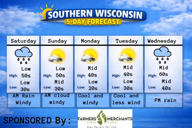 This Saturday evening forecast is sponsored by Farmers & Merchants State Bank! Waterloo is 920-478-2181. Marshall is 608-655-3451. Lake Mills is 920-630-5550. Contact them at https://www.fandmstbk.com/contact-us Buy Weather Man Sam Merch My online merchandise store is now open for shopping! We have pick up spots for Lake Mills and Watertown and you can also get…