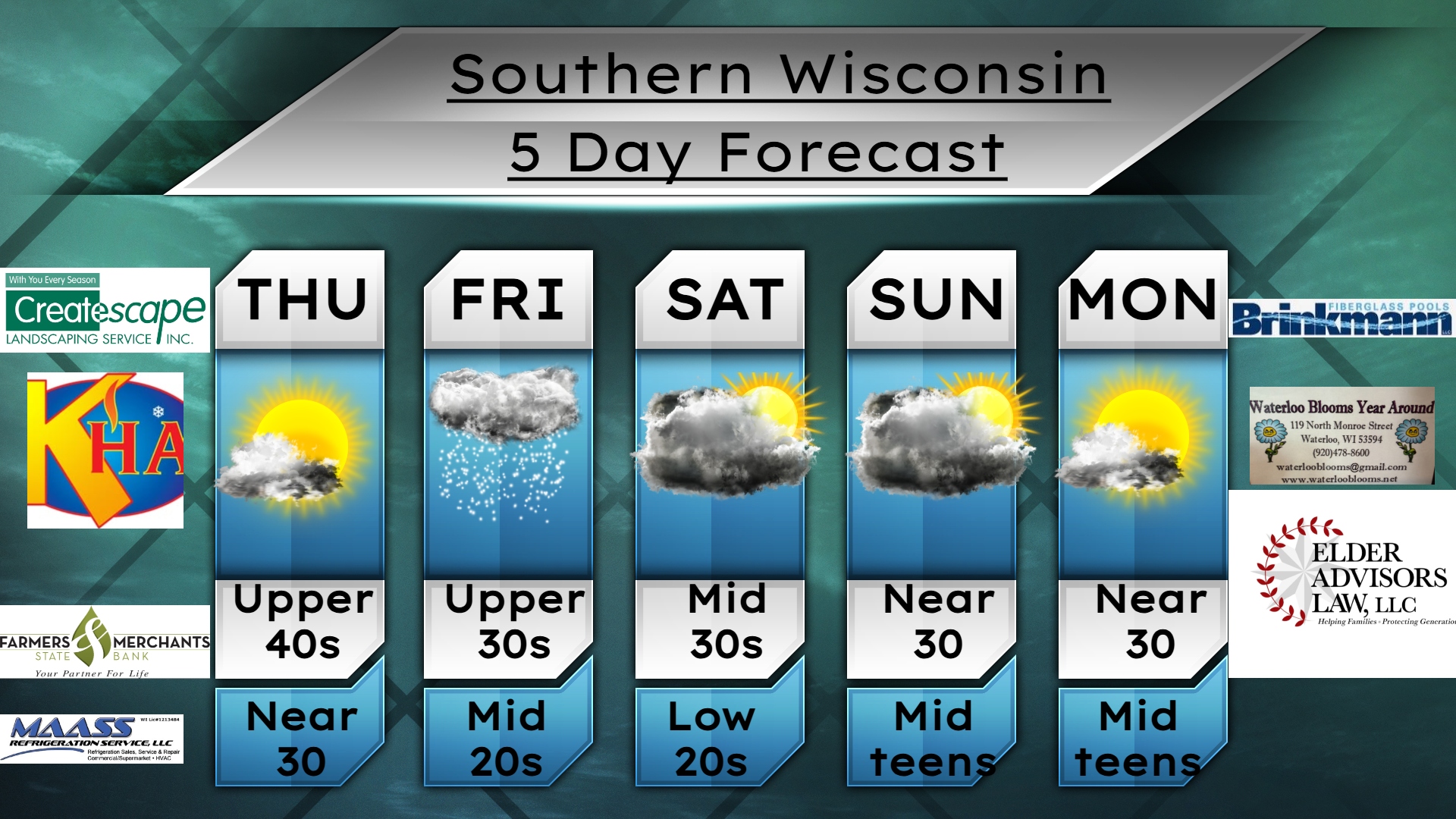 This Thursday evening forecast is brought to you by Klecker’s Heating. 920-261-9218. info@kleckersheating.com www.kleckersheating.com Buy Weather Man Sam Merch My online merchandise store is now open for shopping! We have pick up spots for Lake Mills and Watertown and you can also get your orders shipped! All orders over $100 will be shipped FREE! You can click…