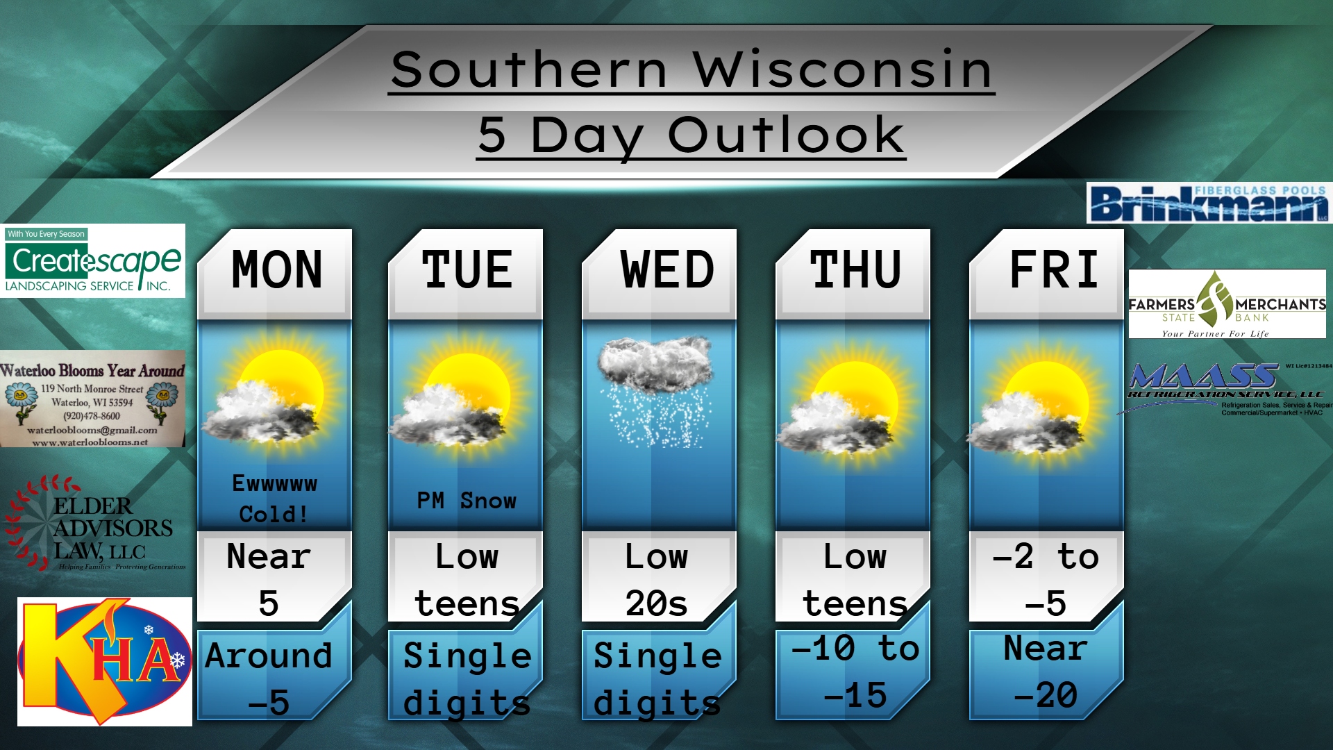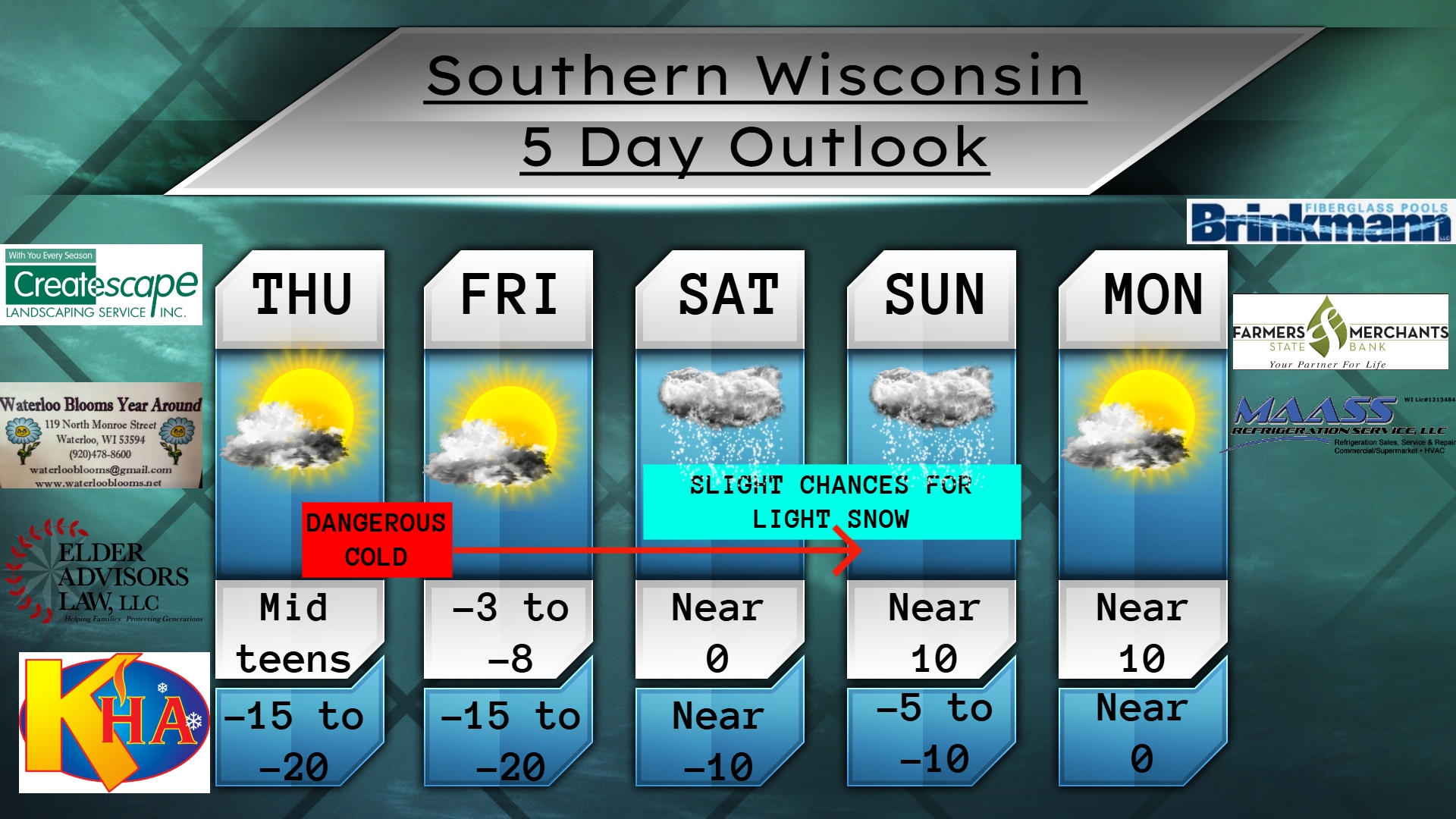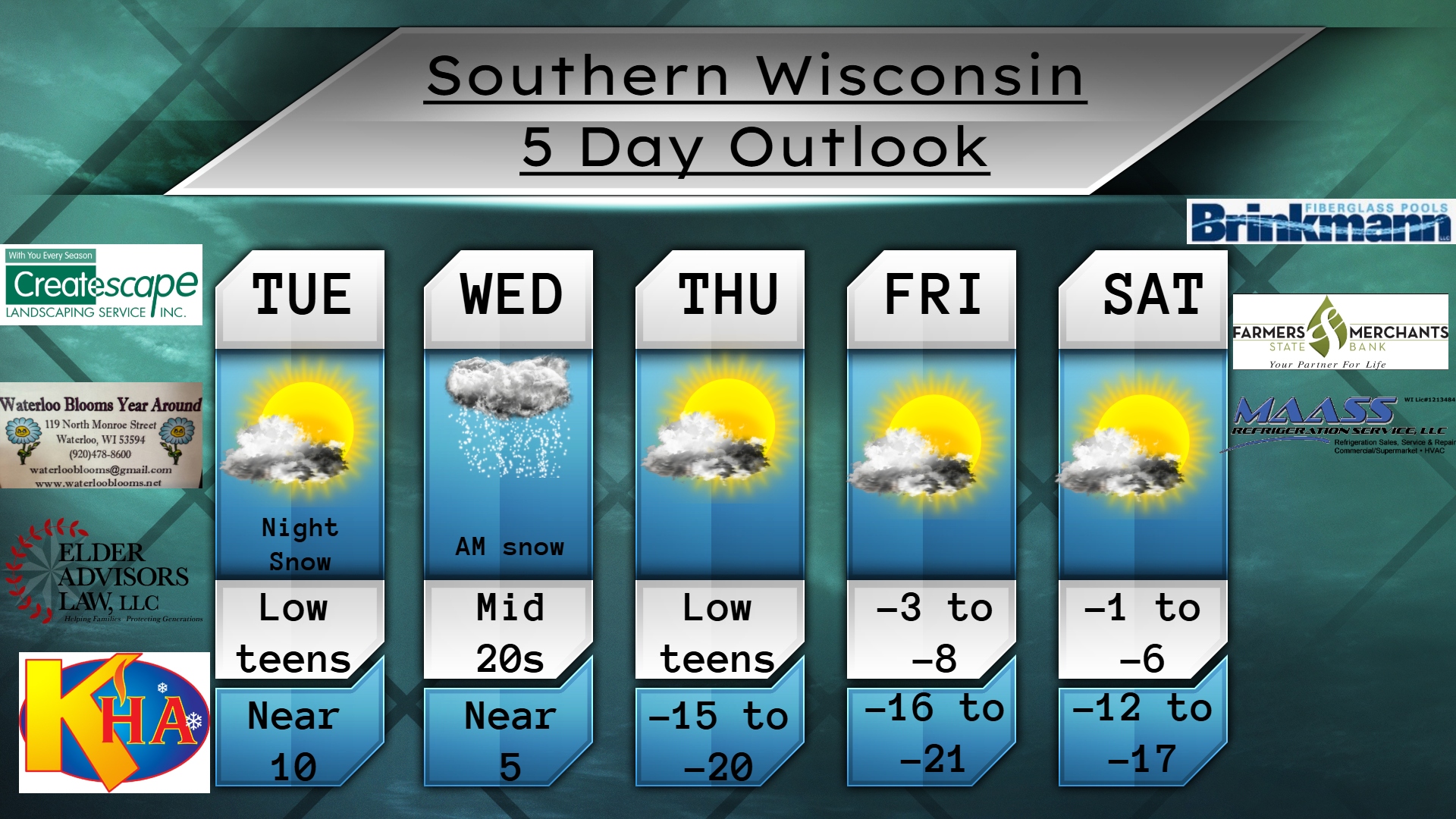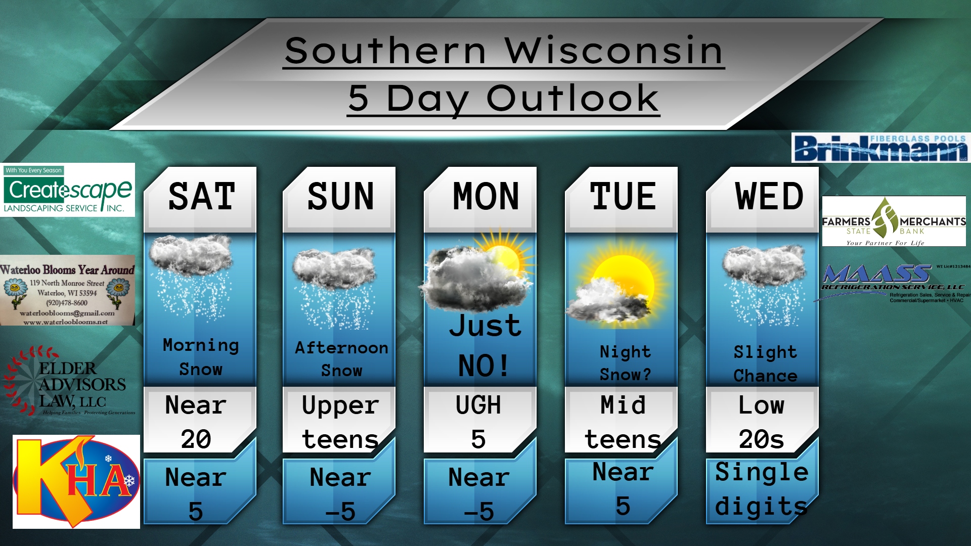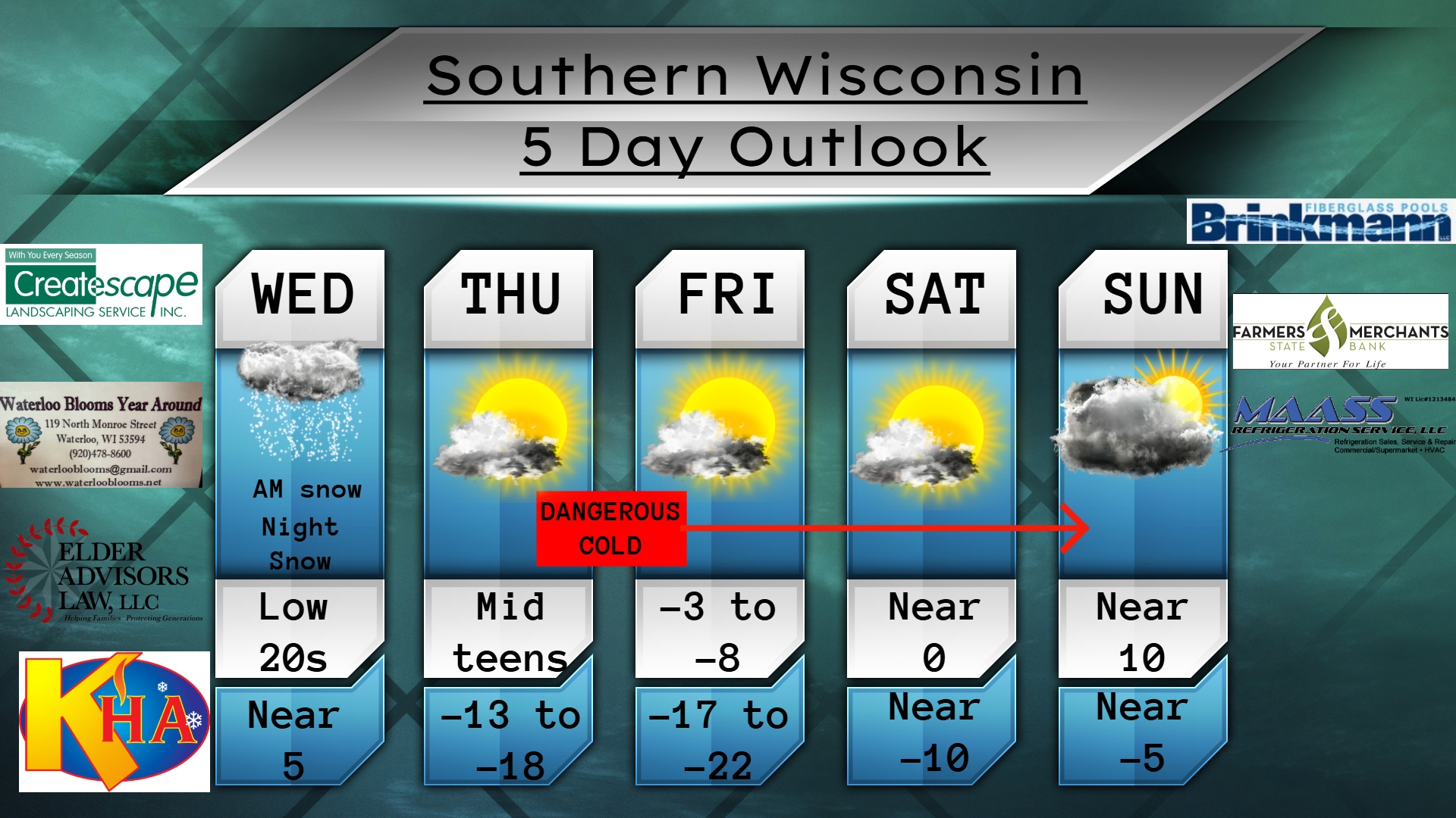 This Thursday evening forecast is brought to you by Klecker’s Heating. 920-261-9218. info@kleckersheating.com www.kleckersheating.com Buy Weather Man Sam Merch My online merchandise store is now open for shopping! We have pick up spots for Lake Mills and Watertown and you can also get your orders shipped! All orders over $100 will be shipped FREE! You can click…