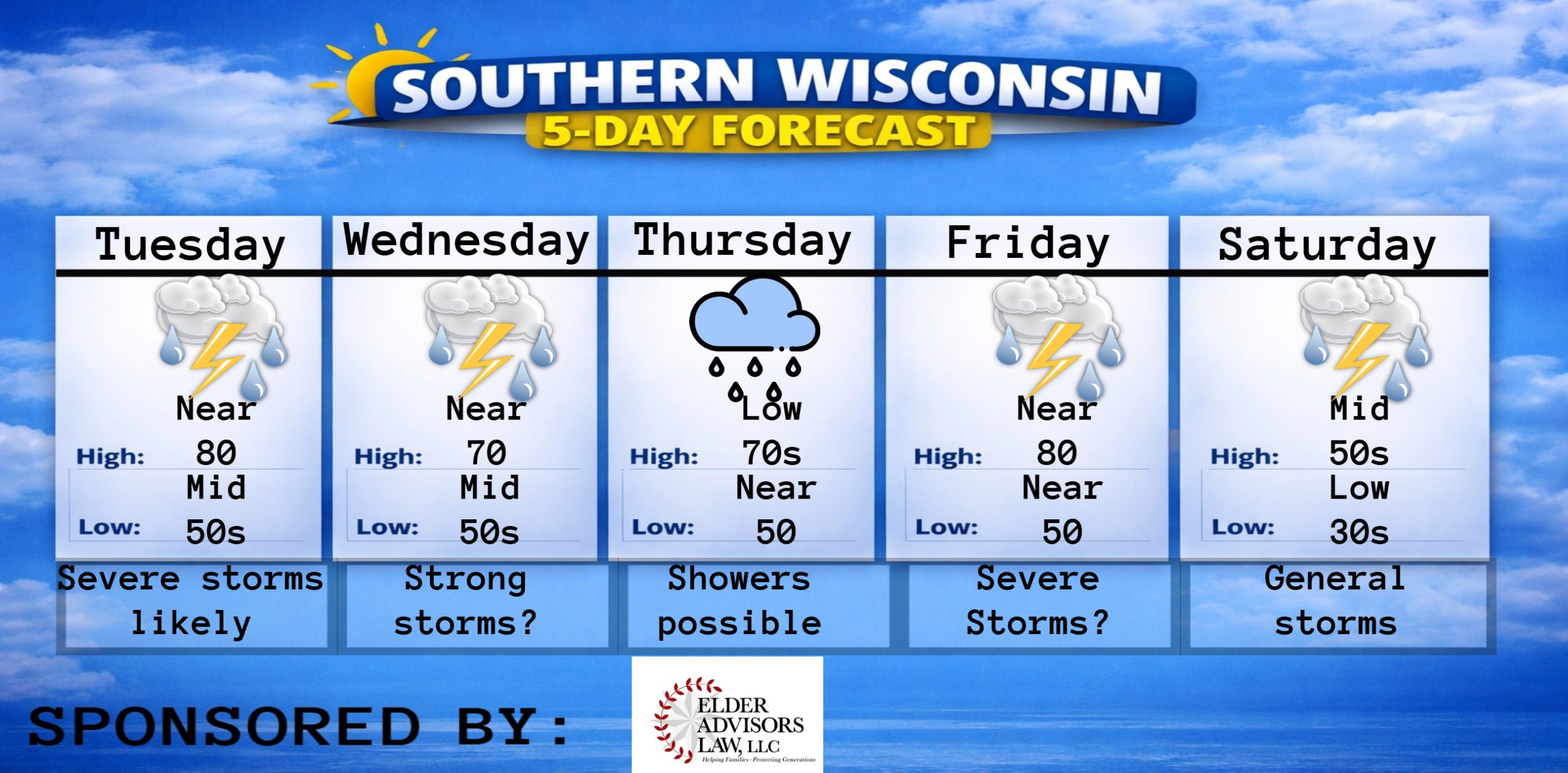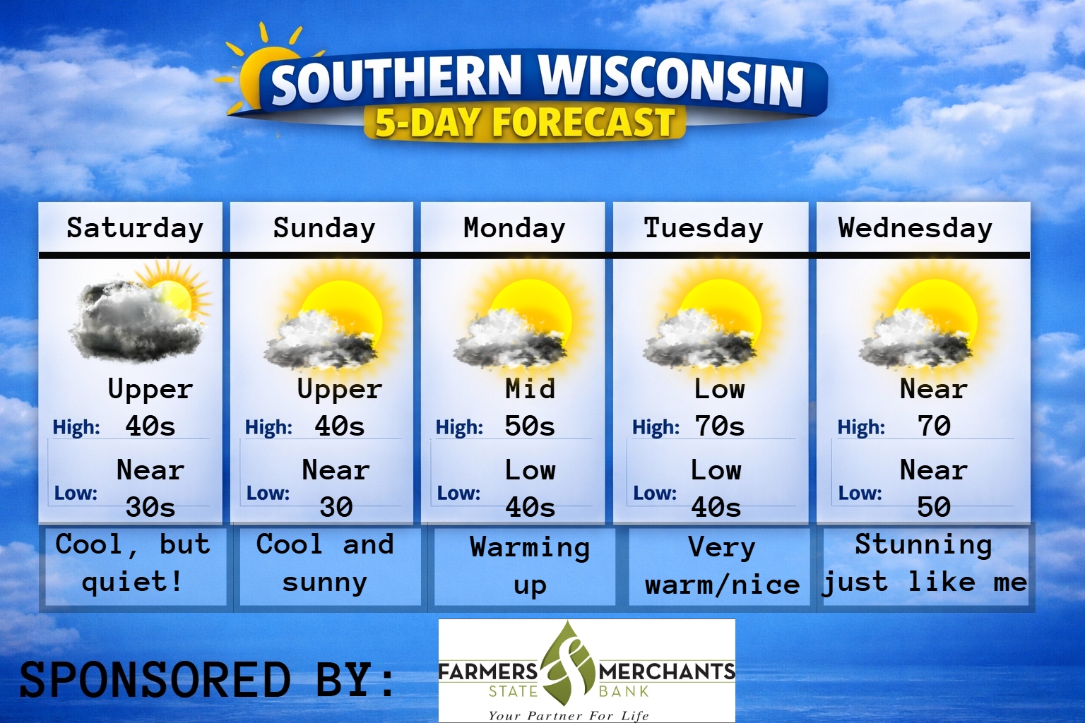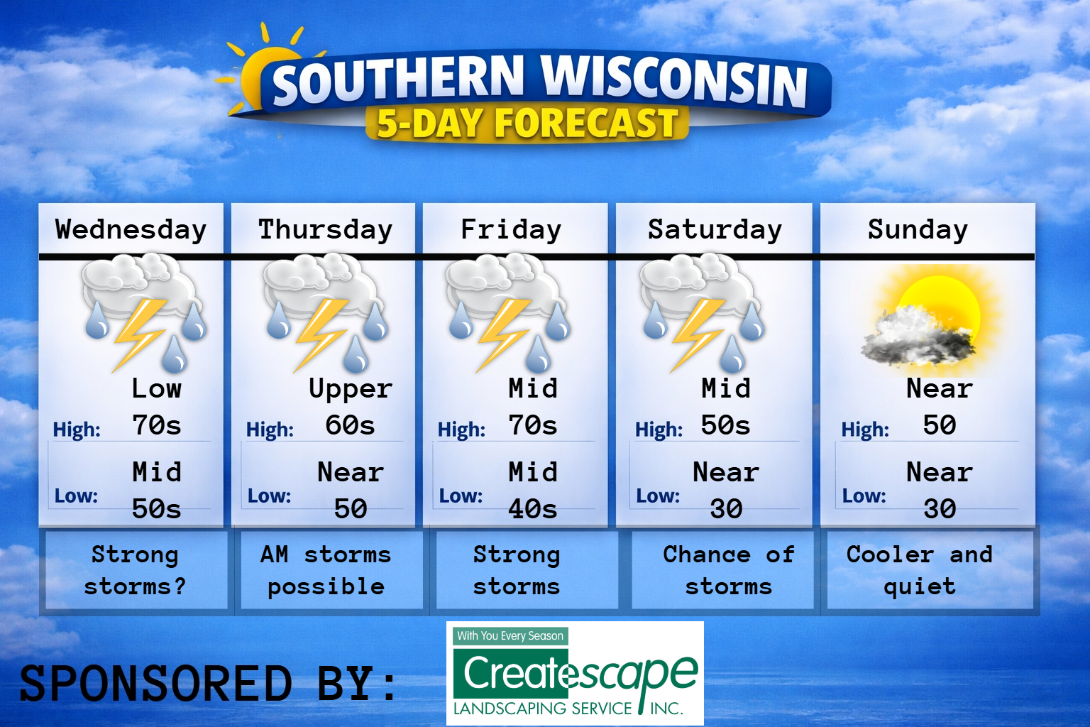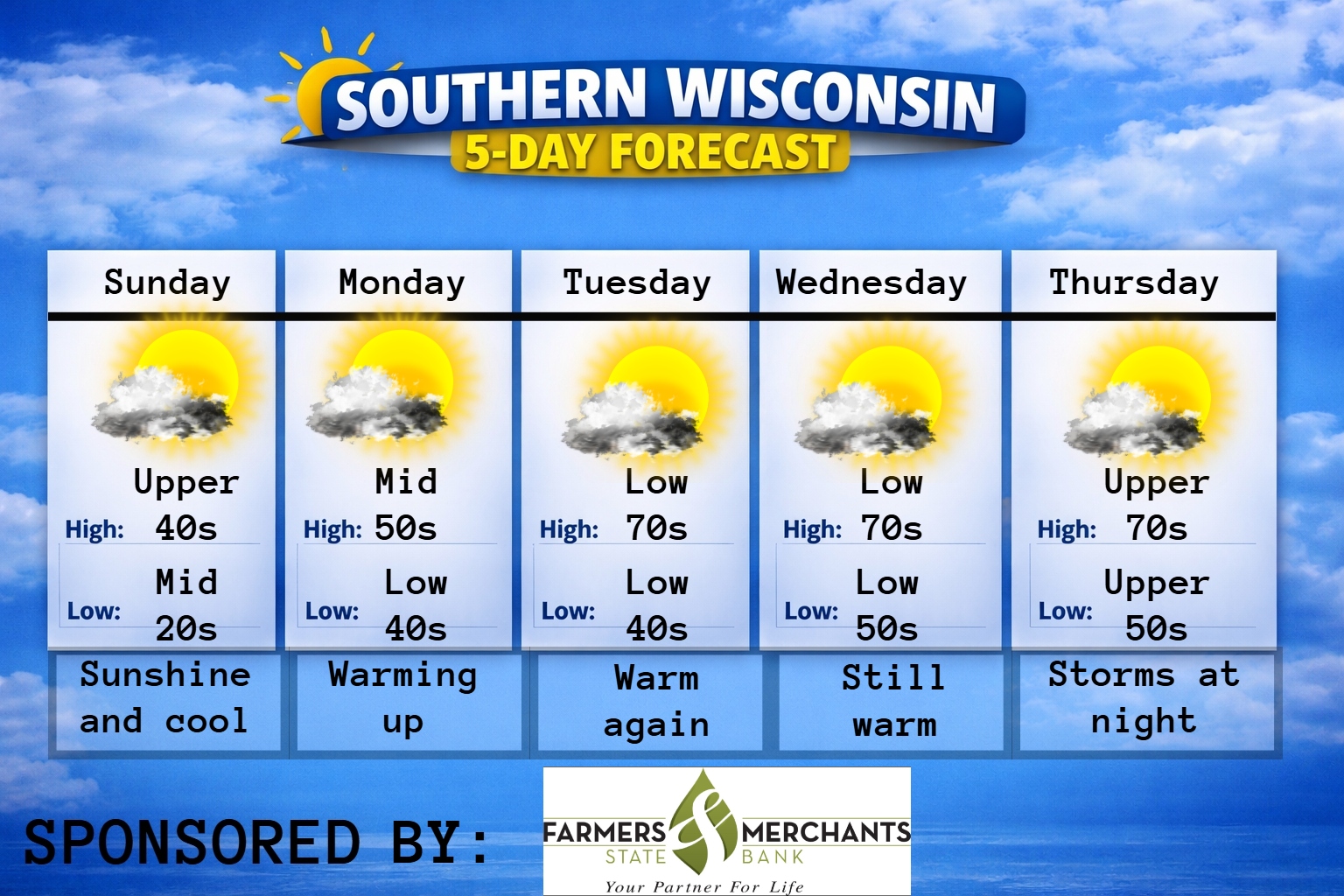 This weekly Forecast is sponsored by Maass Refrigeration. 920-206-9099. info@maassrefrigeration.com. www.maassrefrigeration.com Help support my weather adventures here! THE FORECAST CURRENT CONDITIONS IN WATERLOO, WI: TIME: 615PM TEMP: 46 degrees DEWPOINT: 20 degrees WINDS: Light CURRENT CONDITIONS: Sunshine TONIGHT: TEMPS: Mid 20s WINDS: Light FORECAST: Freeze likely TOMORROW: TEMPS: Low to mid 50s WINDS: SW 4-9mph FORECAST:…